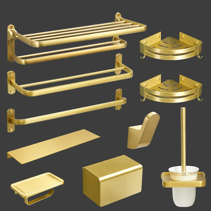 Набор аксессуаров для ванной комнаты, матовая Золотая угловая полка, вешалка для полотенец, держатель для полотенец, держатель для туалетной щетки, набор оборудования для ванной