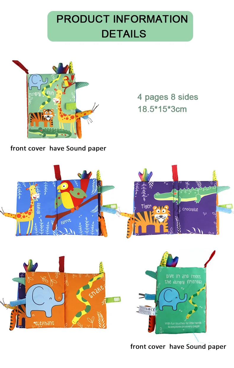 Детская книга, игрушки для детей 0-12 месяцев, обучающие игрушки для детей, Интерактивная звуковая бумага Монтессори, тканевые книги
