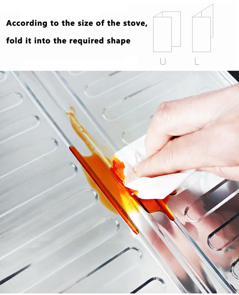 -Утолщенный материал из алюминиевой фольги, термостойкий и маслостойкий, высокая термостойкость (температура плавления составляет около 660 ℃) -Держите кухонные столешницы чистыми и аккуратными, чтобы предотвратить масляные пятна на печи и стенах-складная конструкция, которую можно сложить в различные формы в соответствии с размером плиты и вашими потребностями. Также удобно складывать и хранить и не занимать кухонное пространство.
