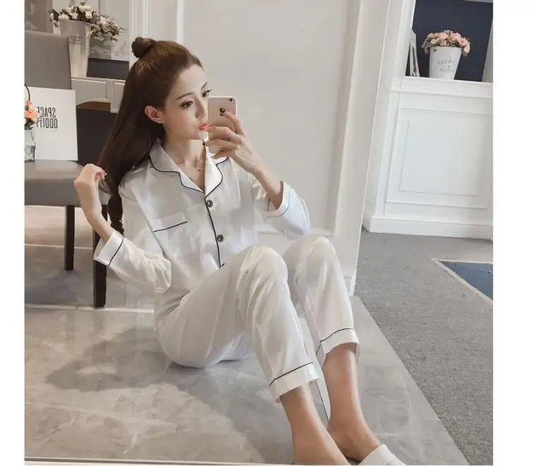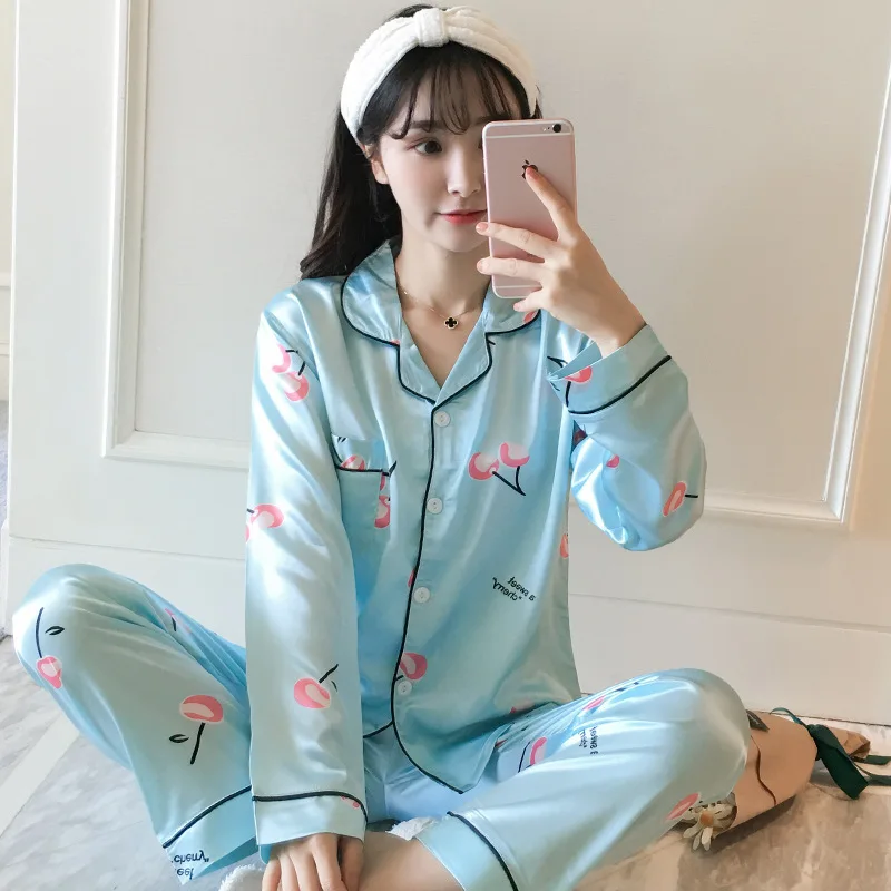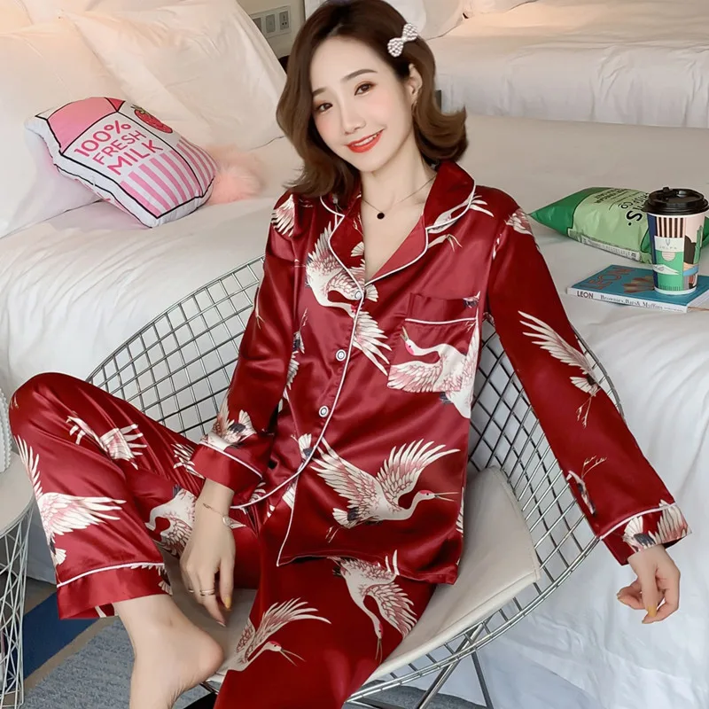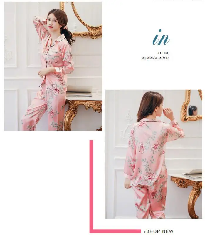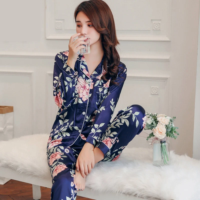 Женский пижамный комплект, одежда для сна, зимняя шелковая атласная пижама с длинным рукавом, сексуальное нижнее белье, пижама V-образная Пижама, костюм с цветочным принтом, пижамы pjs