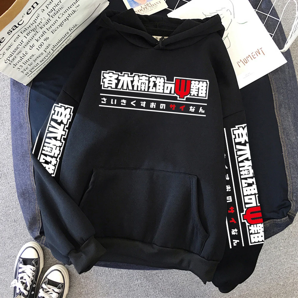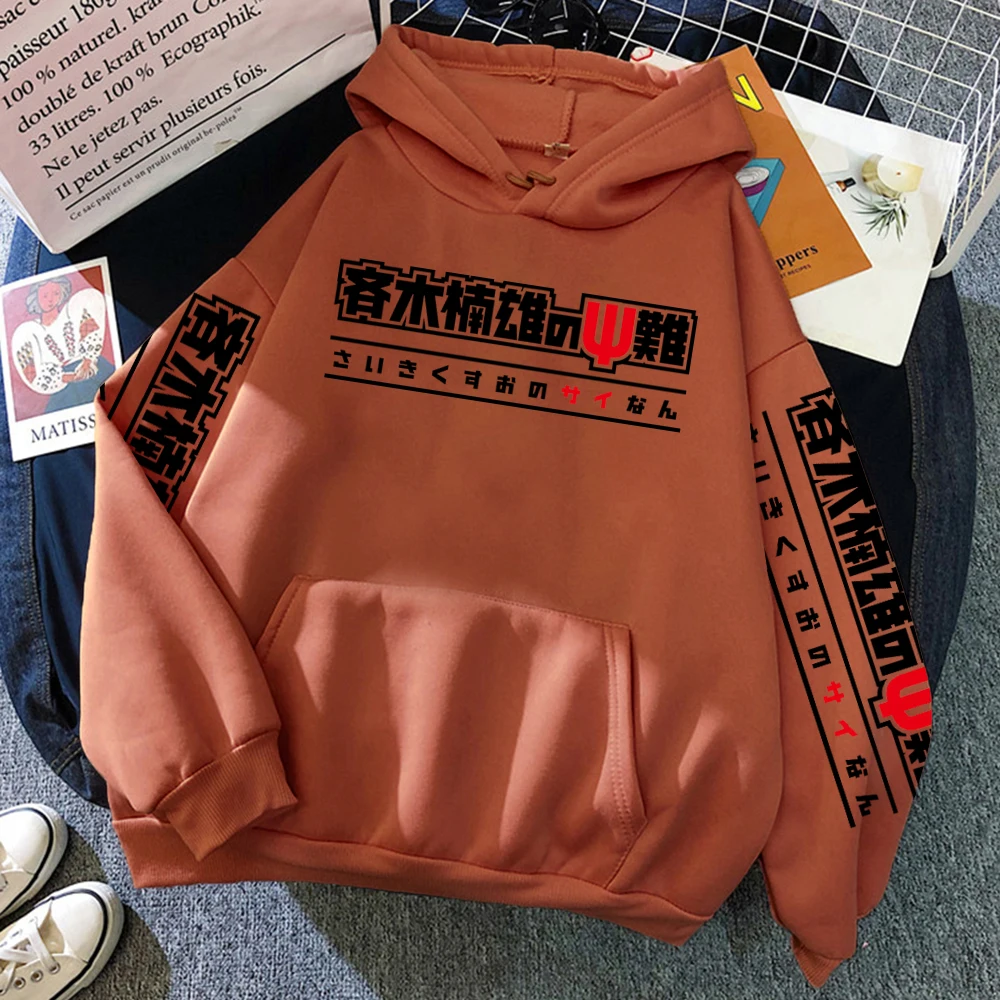 Толстовка Saiki Kusuo мужская с капюшоном, модная Свободная кофта с принтом логотипа японского аниме, в стиле оверсайз, с карманами, на осень