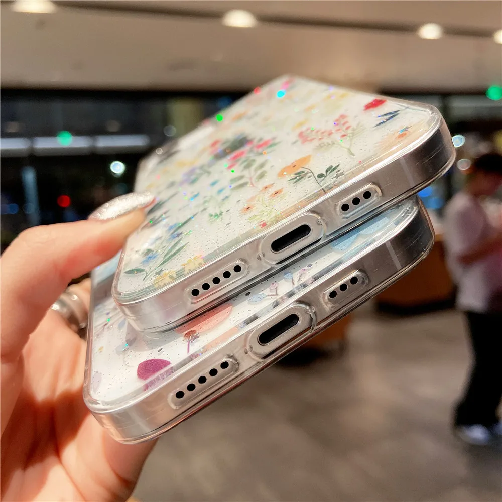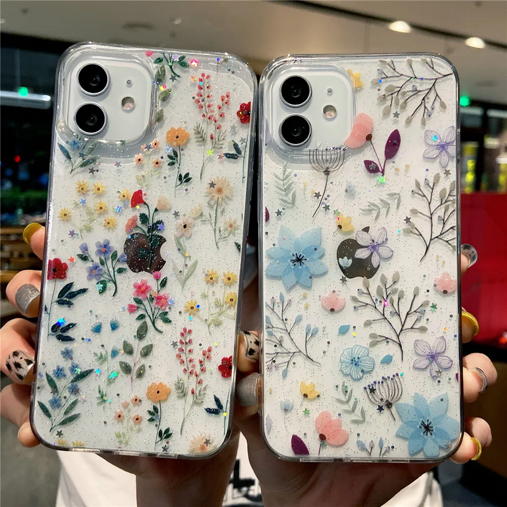 Прозрачный блестящий Мягкий силиконовый чехол с цветами для телефон...