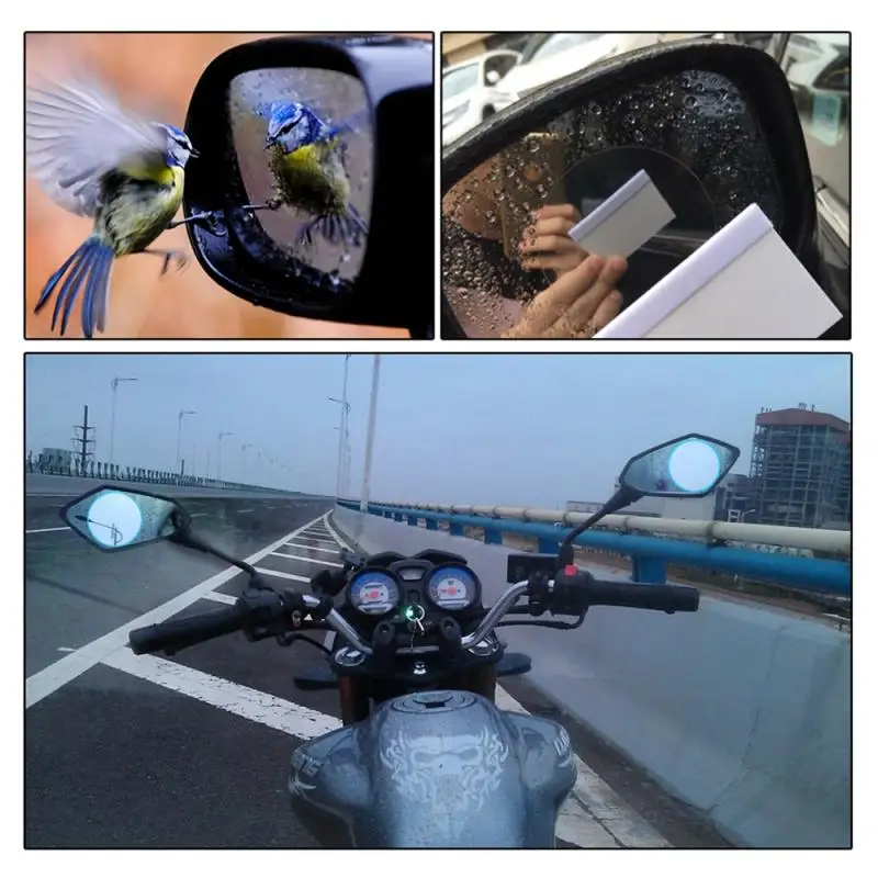 Преимущества: это инновация, которая может решить проблему, так как в дождливую погоду Вы не сможете четко разглядеть двойные очки, благодаря чему ваше зрение становится яснее, а путешествие безопаснее. Эффект: может защитить зрение во время вождения в дождливые дни. Материал: ПЭТ Это внешнее зеркало универсального размера. Вы можете свободно разрезать на куски по мере необходимости. Водонепроницаемый, противотуманный и пыленепроницаемый эффект. Гидрофильная технология.