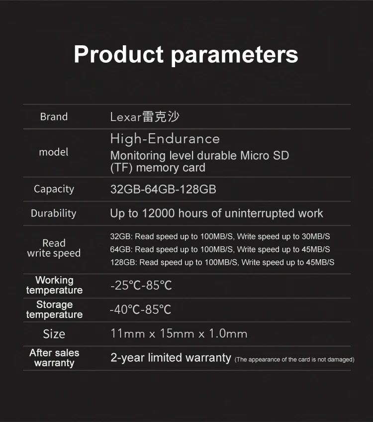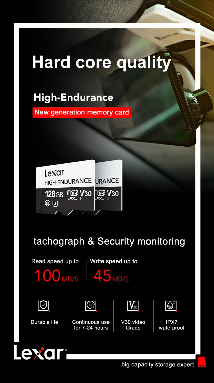 Карта памяти Lexar Micro SD, высокая прочность, макс. 100 МБс.с, 32...