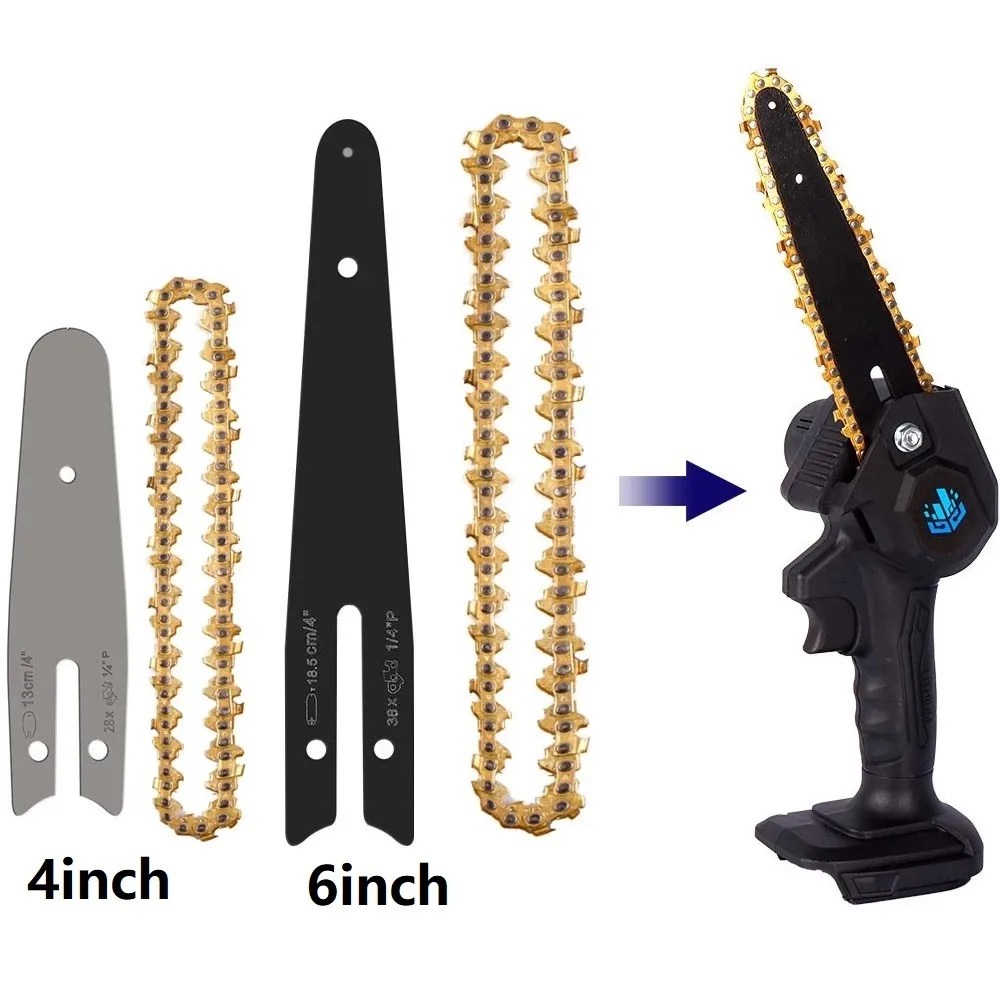 2. Цепь цепной пилы и аксессуары направляющих колес изготовлены из высокоскоростной стали 65Mn, с высокой твердостью, быстрой скоростью нарезки и улучшенной эффективностью.