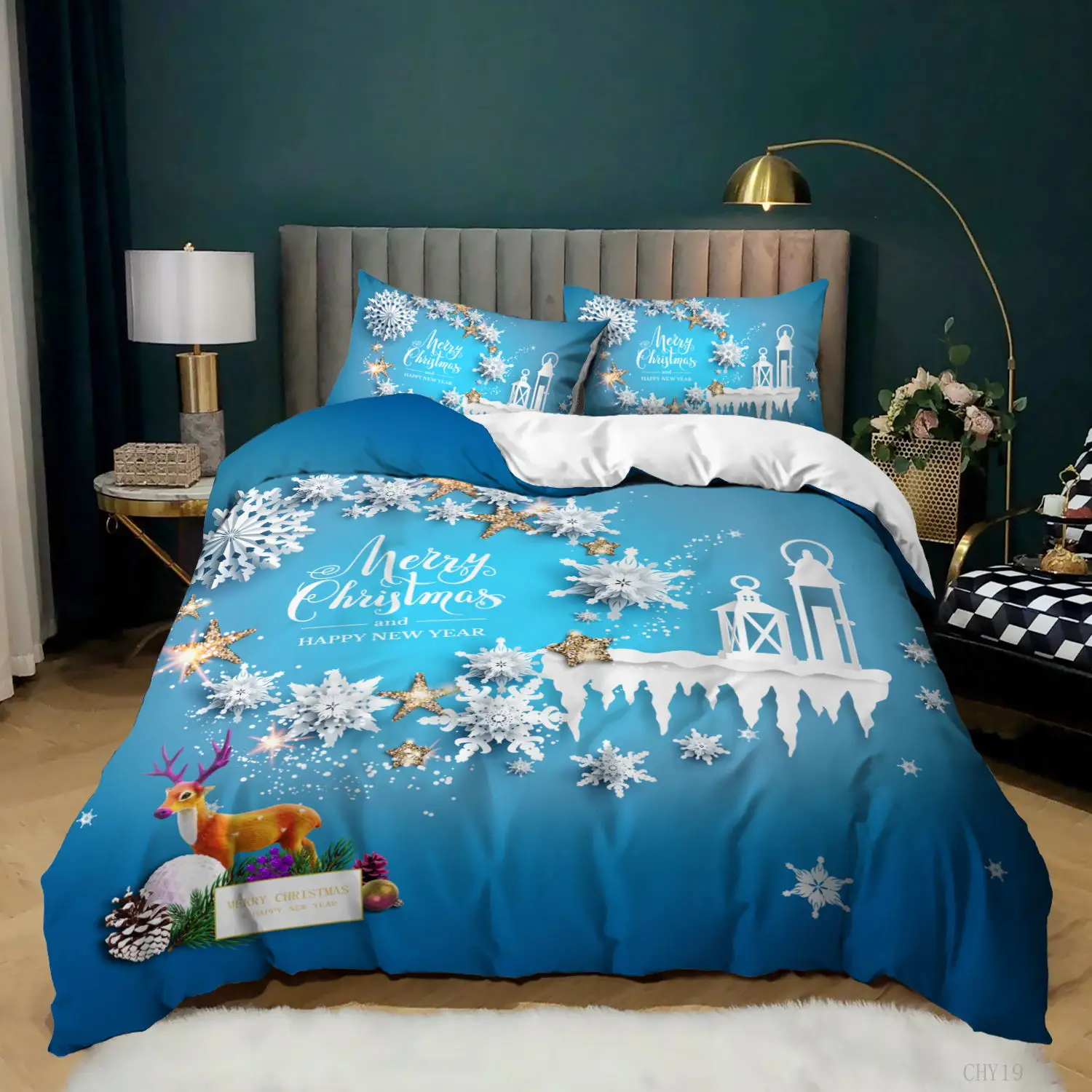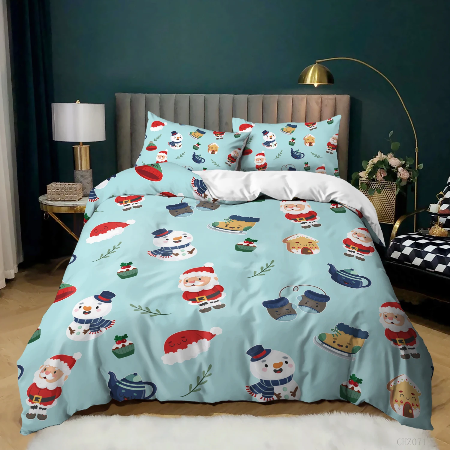 Комплект постельного белья с 3D-принтом Санта-Клауса, пододеяльник ...