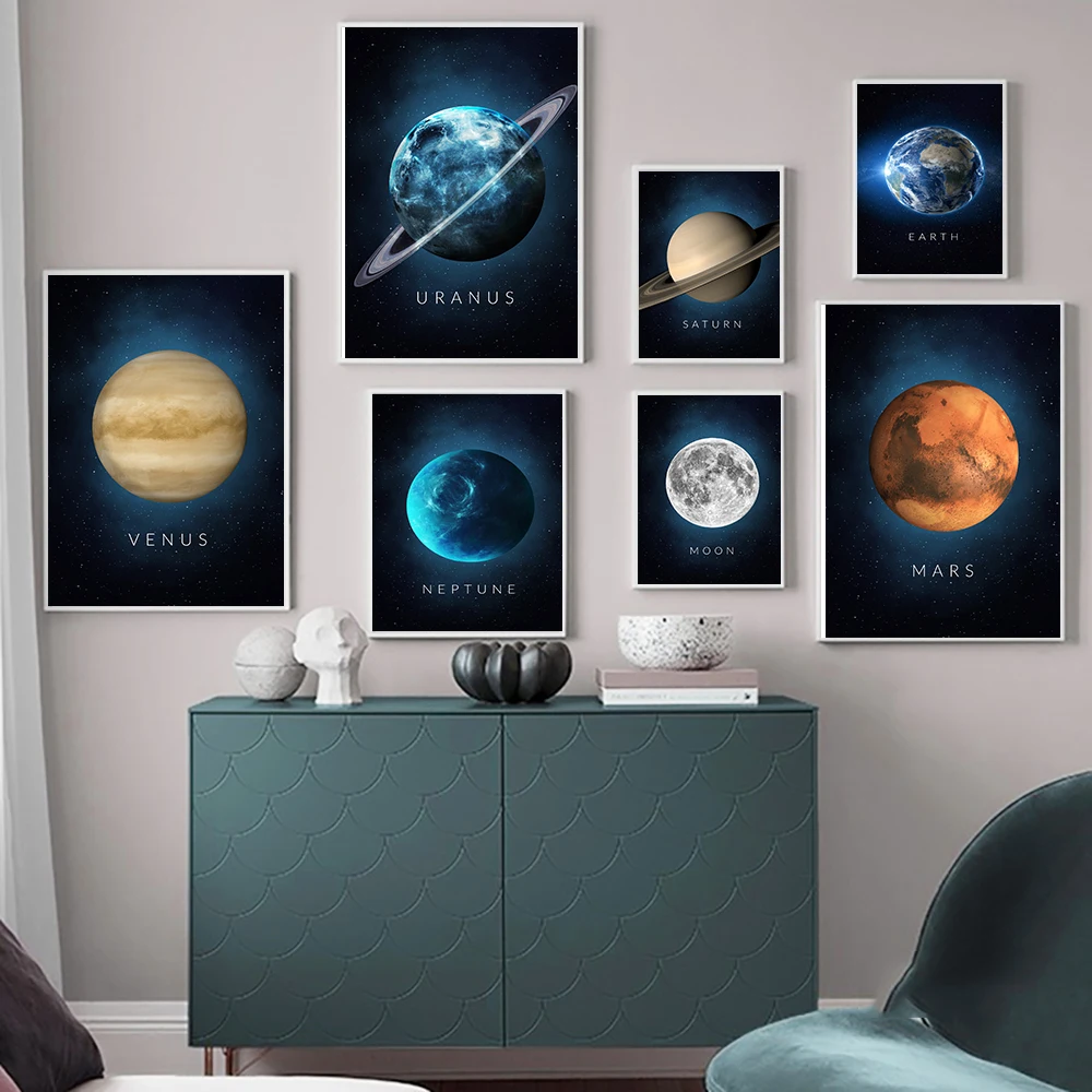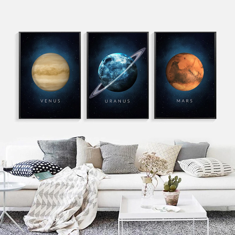 Настенная Картина на холсте с изображением солнца, Венеры, Сатурна, Марса, планеты Плуто, скандинавские плакаты и принты, настенные картины для декора гостиной