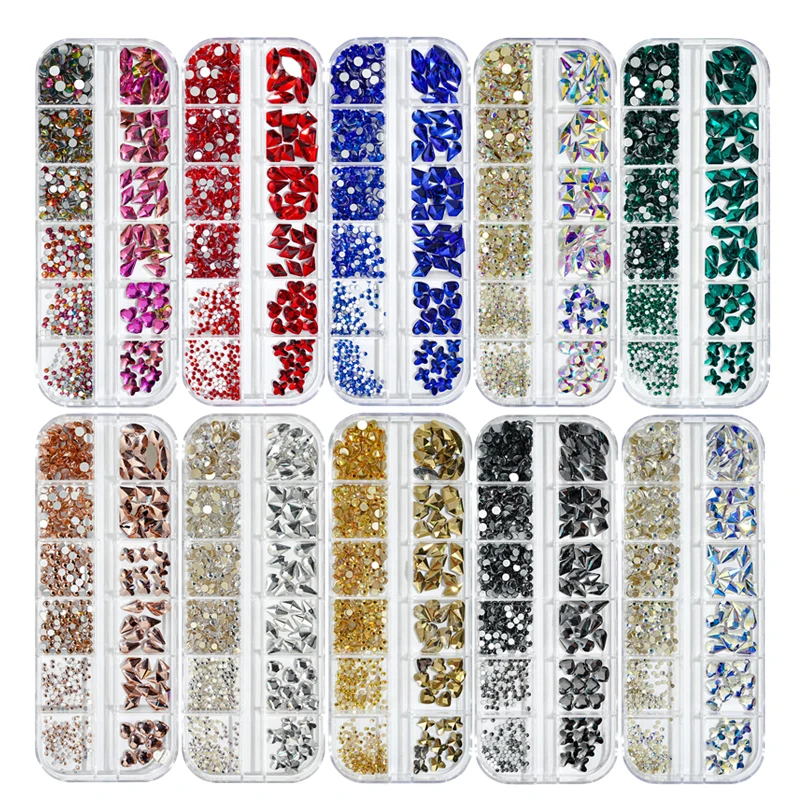 12Gird коробка разных размеров ABкрасочные стразы горячей фиксации ...