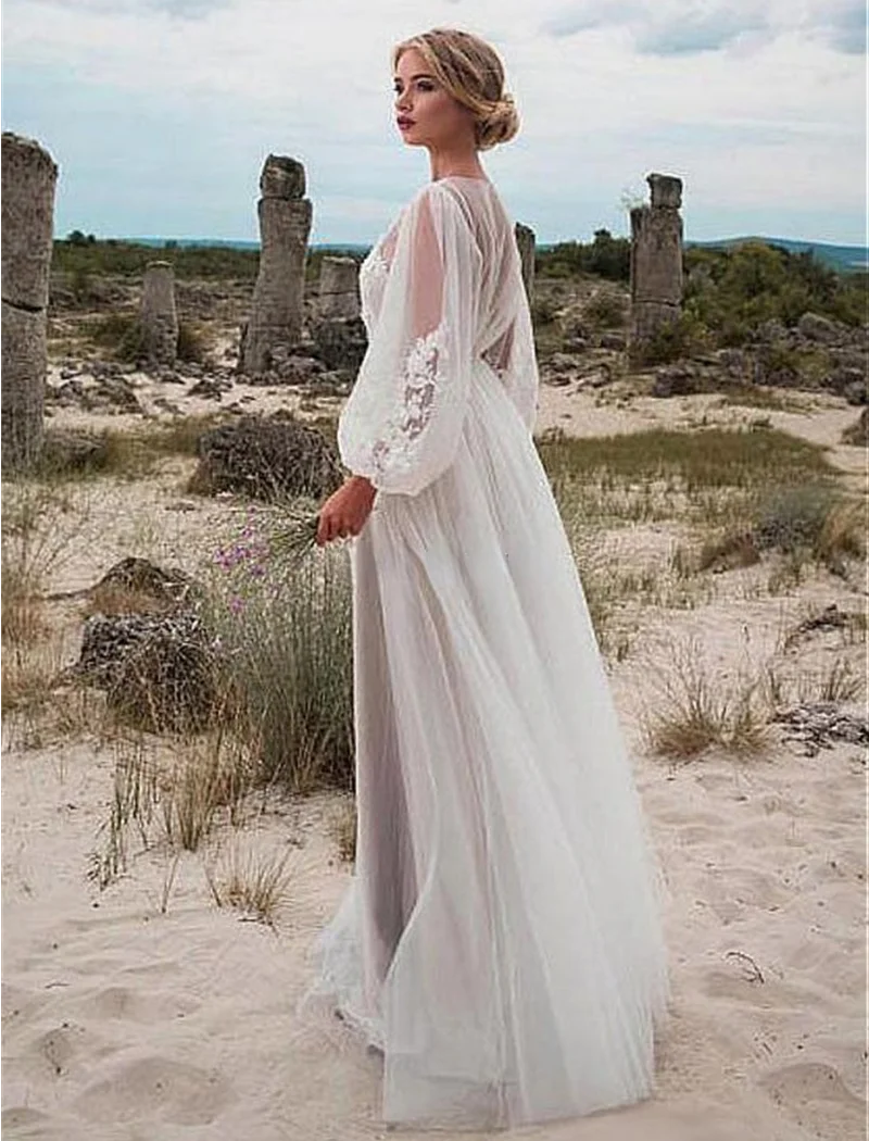 Женское свадебное платье с длинными рукавами soworthy, Пляжное шифо...