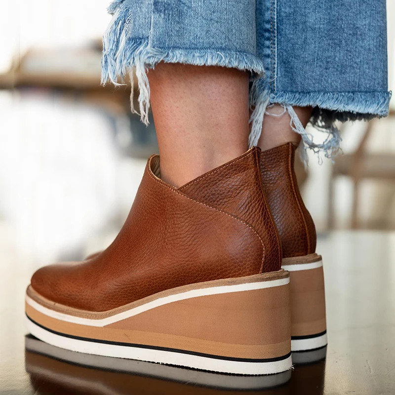 Осенние модные женские ботинки, ботинки на платформе с боковой молнией для женщин 2021, однотонная повседневная обувь, женские высокие ботинки на танкетке