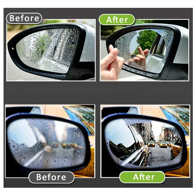 Преимущества: это инновация, которая может решить проблему, так как в дождливую погоду Вы не сможете четко разглядеть двойные очки, благодаря чему ваше зрение становится яснее, а путешествие безопаснее. Эффект: может защитить зрение во время вождения в дождливые дни. Материал: PET Nano Это внешнее зеркало универсального размера. Вы можете свободно разрезать на куски по мере необходимости. Водонепроницаемый, противотуманный и пыленепроницаемый эффект. Наногидрофильная технология.