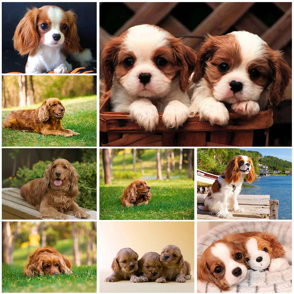 Алмазная живопись для домашних животных, сделай сам, кокер-спаниель, король, Чарльз, собака, алмазная вышивка, трехмерная стена, украшение для дома 5D