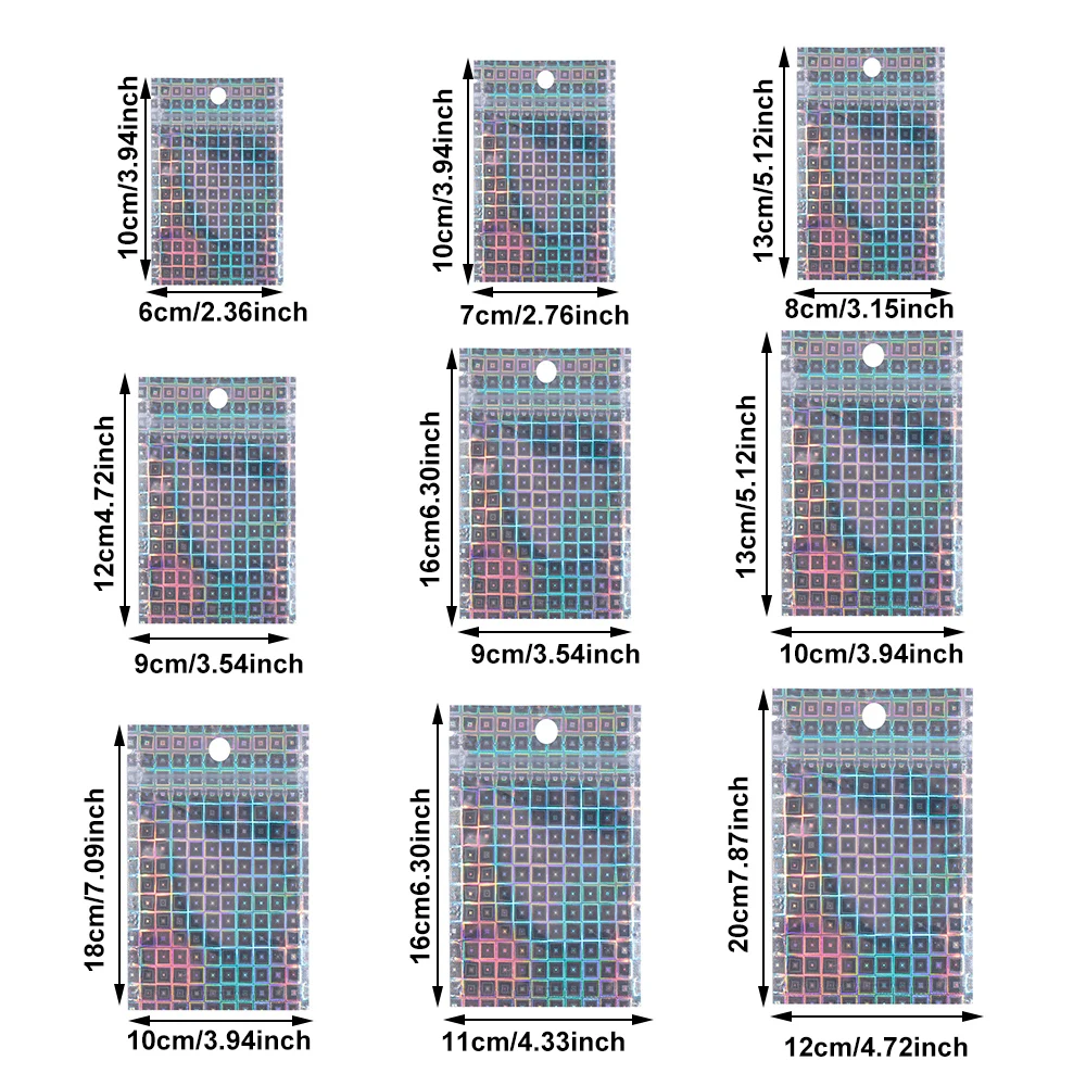 10 шт., пластиковые пакеты на молнии, с голограммой из алюминиевой фольги