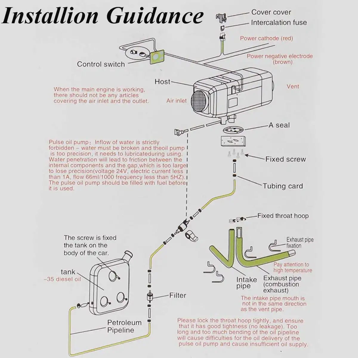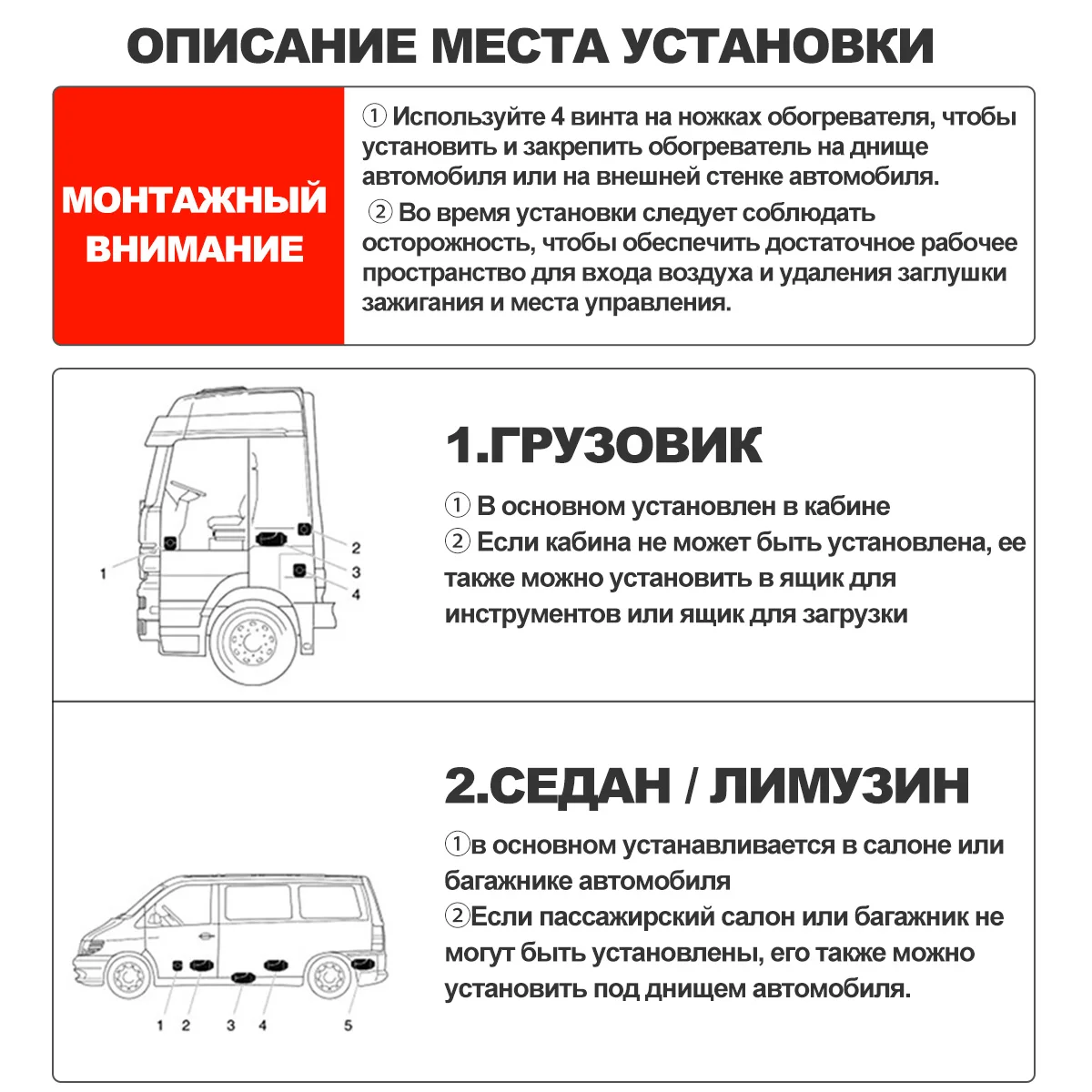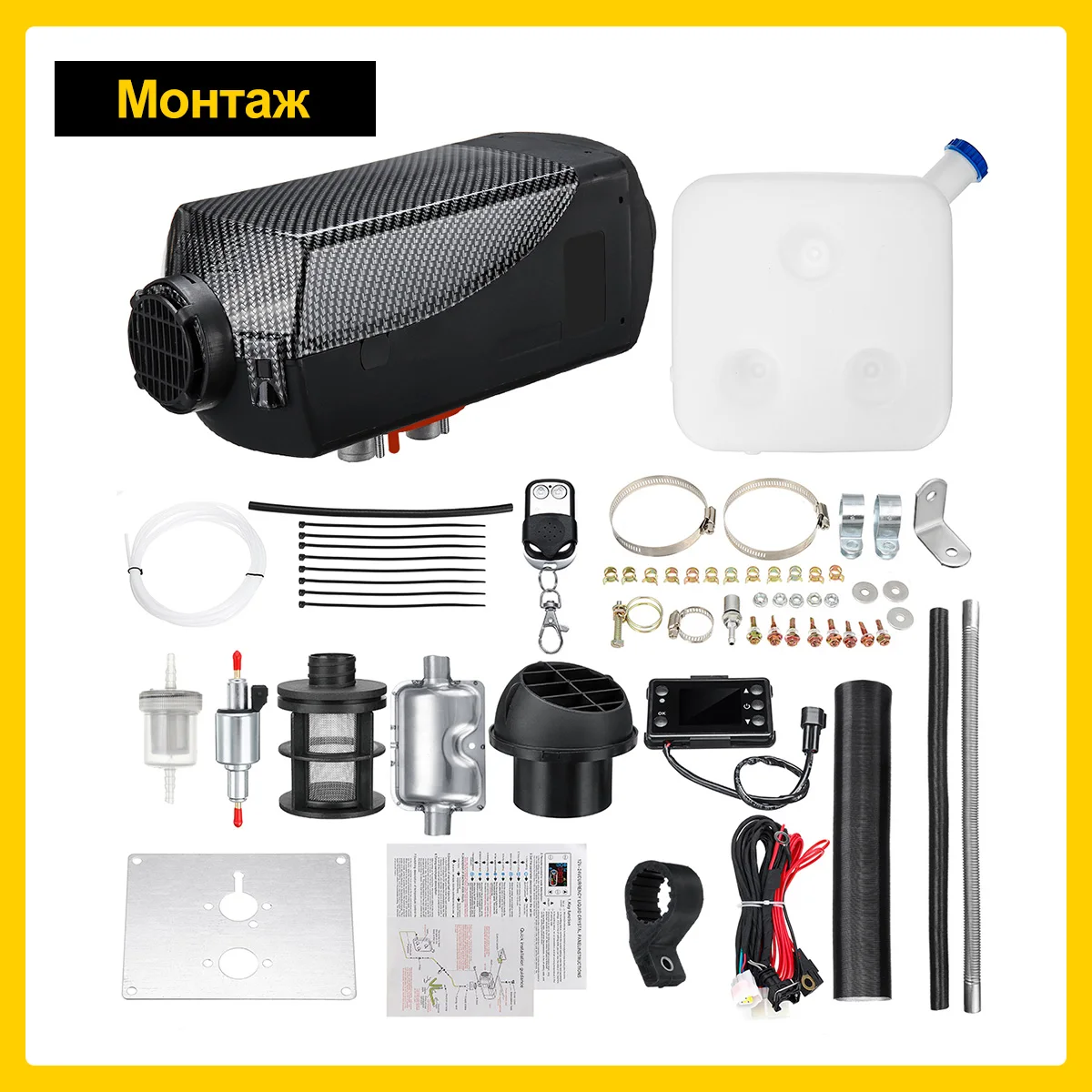 12V 5KW Дизельный подогреватель воздуха комплект черный углеродное волокно фактура для грузовика лодка прицеп для легковых автомобилейХарактеристики:Материал: металл + пластикЦвет: черный текстура углеродного волокна и черныйТопливный бензин: дизель (10 л)Размер: 39x14.5x 14,5 см/15,35 ''x 5,7'' x 5,7''Напряжение: 12 ВМощность: 5000 ВтПолный коэффициент сгорания: 100%Расход топлива: 0,11-0,55 л/часРабочая температура: -40 °C ~ + 40 °CЗащита от перегрева: ≥ 180 ℃Диаметр выхлопной трубы: 25 ммДиаметр трубы: 5 ммДлина кабеля: 30 смЖгут проводов: 4 мЖгут проводов термостата: 15 смОсобенности-Два режима работы: режим кондиционера и режим нагревателя.-Подогрейте охлаждающую жидкость двигателя, чтобы избежать износа двигателя, который запускается при низкой температуре-Низкий уровень выбросов, низкий расход топлива и низкий уровень шума-Плавный, автоматический комнатный контроль температуры с предварительной установкой температуры.-Летучая технология, с помощью керамической вилки зажигания нагревание топлива испаряется в газ, быстрое зажигание, полное сгорание.-Простая установка: компактный дизайн хорошо подходит для использования в различных узких пространствах.-Топливо поставляется из собственного бака транспортного средства.-Применимо к: различным дизельным механическим транспортным средствам, таким как автомобили, автобусы, RVs, грузовики, инженерные транспортные средства и т. д.-Нельзя помещать в водуПосылка включает в себя: (всего 61 шт. аксессуаров)1 x Воздушный обогреватель1 х глушитель1 x ЖК-термостат1 x пульт дистанционного управления (батарейки не входят в комплект)1 бак (10 л)1 х проволочный пучок1 x вентиляционное отверстие1 х воздуховодная труба1 х впускная труба1 х выхлопная труба1 х масляный насос1 x фиксированная пластина1 х белая масляная труба1 x насадка для масла1 x крепеж1 комплект установкиПримечание:1. Допускается погрешность в 1-5 мм из-за ручного измерения. Перед размещением заказа, пожалуйста, внимательно ознакомитесь со всеми условиями.2. Цвета могут отличаться, так как на дисплее разница, пожалуйста, поймите.