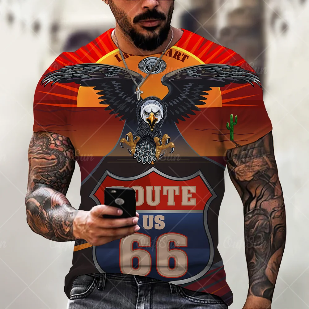 Футболка мужская с коротким рукавом и круглым вырезом, свободная рубашка в стиле ретро, с 3D-принтом шоссе 66, большие размеры, лето