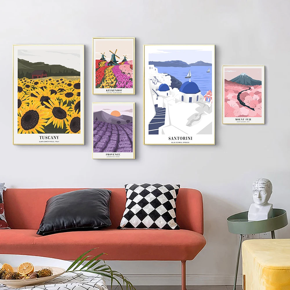 Красочный постер путешествия в городе, Япония, Нью-Йорк, Париж, пейзаж, холст, печать, настенные художественные картины для украшения дома, картины для интерьера