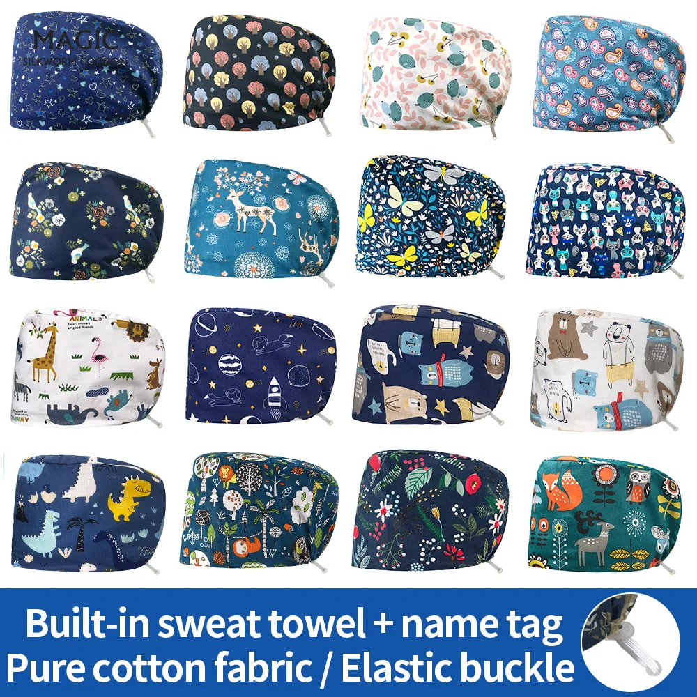 Шапка медсестринская с принтом животных, мягкая впитывающая пот пол...