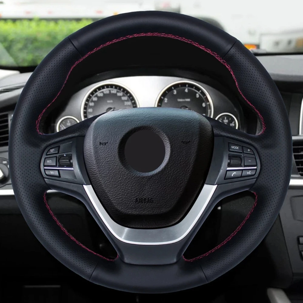 Сшитая вручную чехол рулевого колеса автомобиля Нескользящая черная...