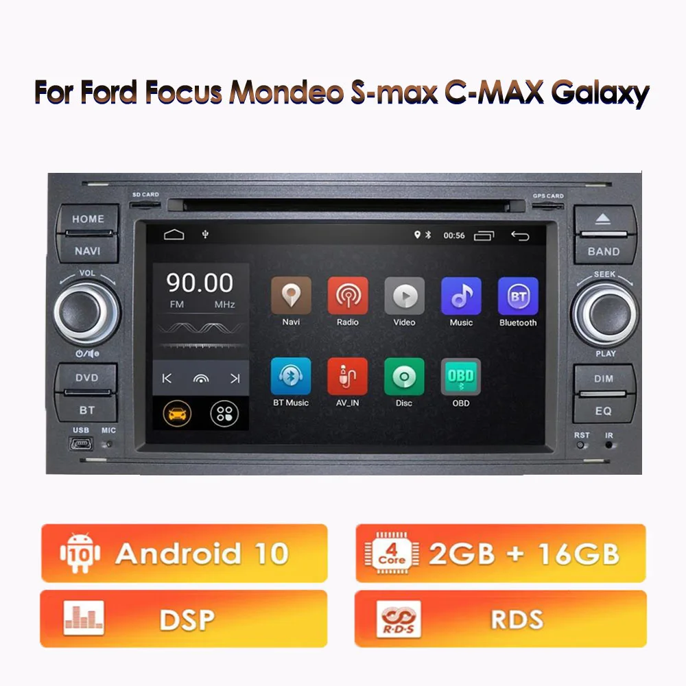 Автомагнитола 2 Din Android 10 для Ford Focus 3 C-MAX Mondeo S-max Galaxy Fiesta Transit Fusion Connect Kuga DVD мультимедиа DSP RDS