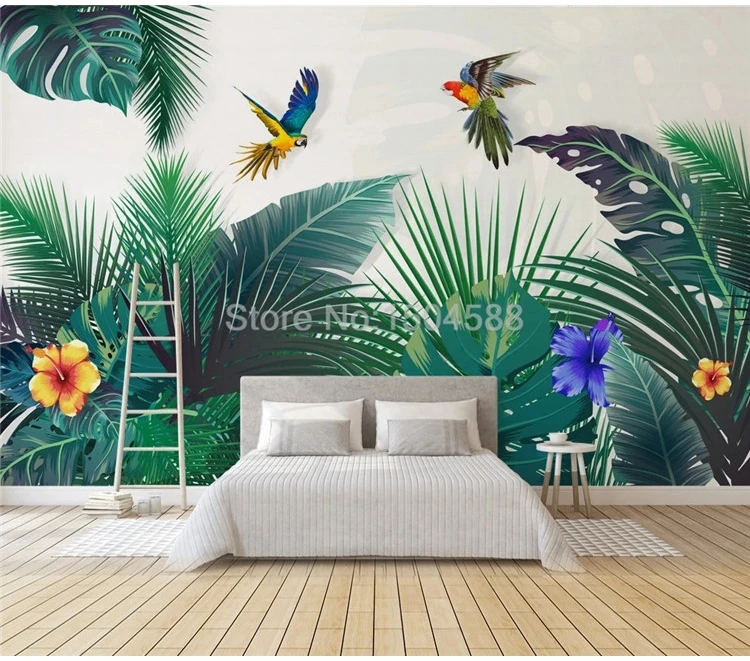 Настенные 3D-обои на заказ, ручная роспись, тропический лес, красочный Попугай, лист и цветок, Фреска, фоновые настенные фрески для гостиной