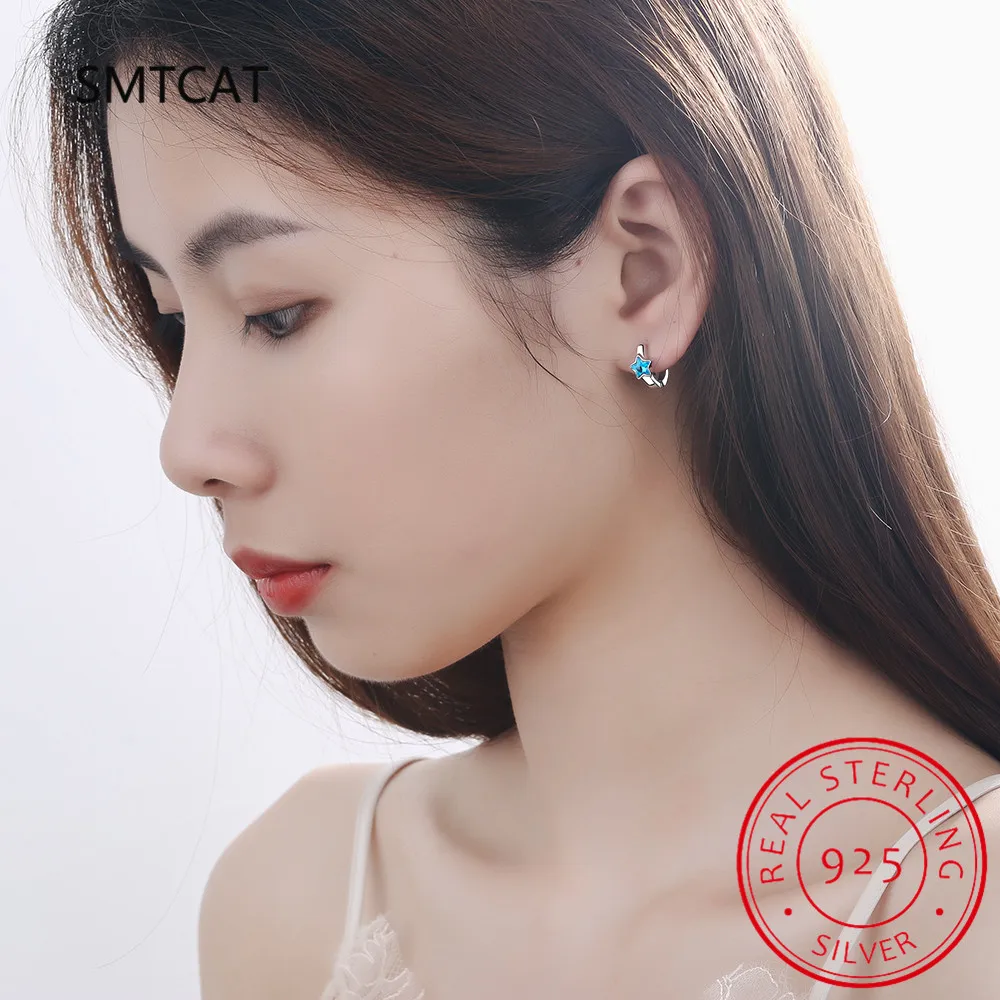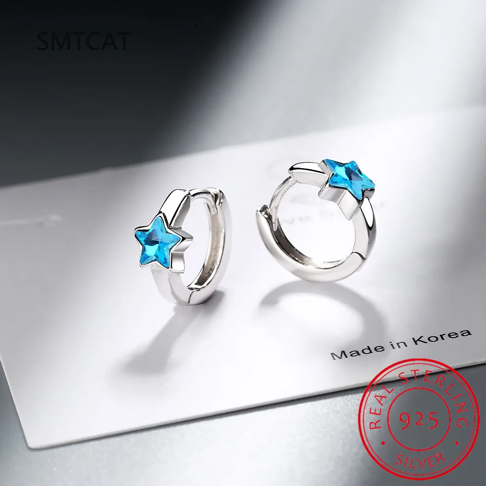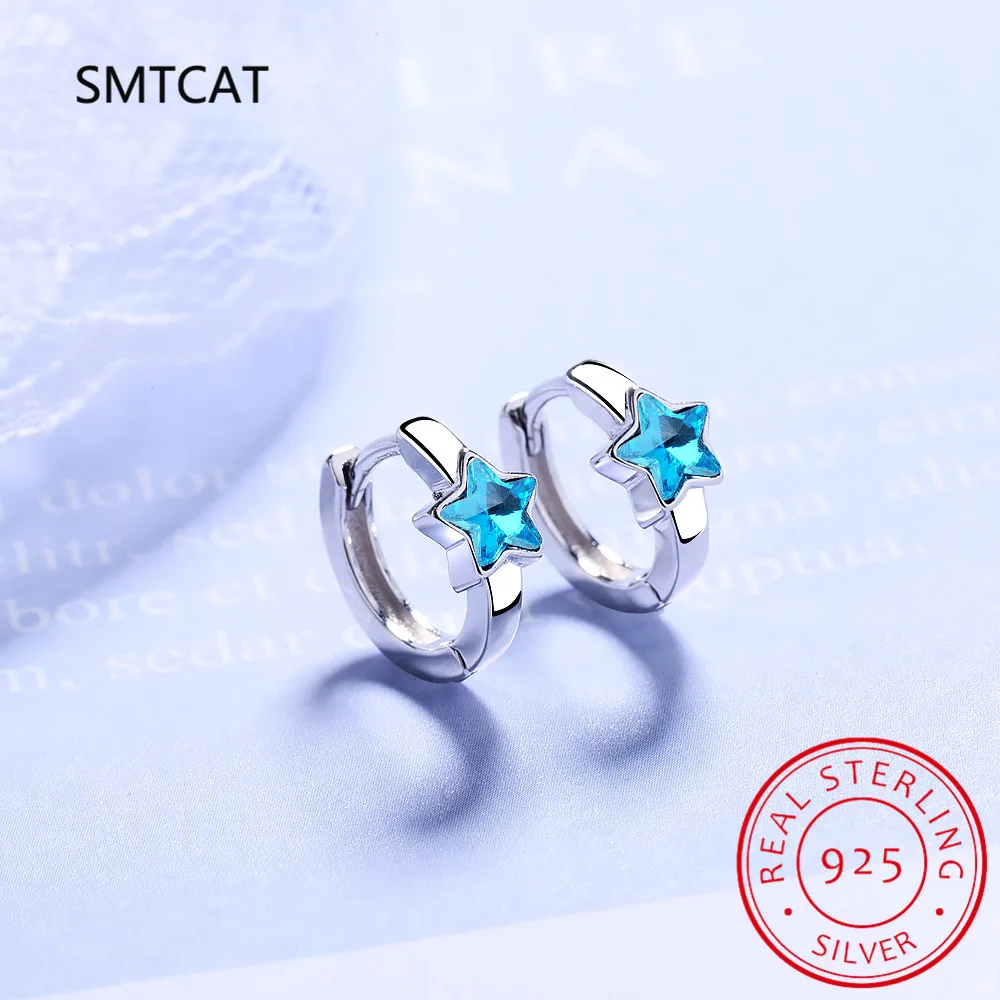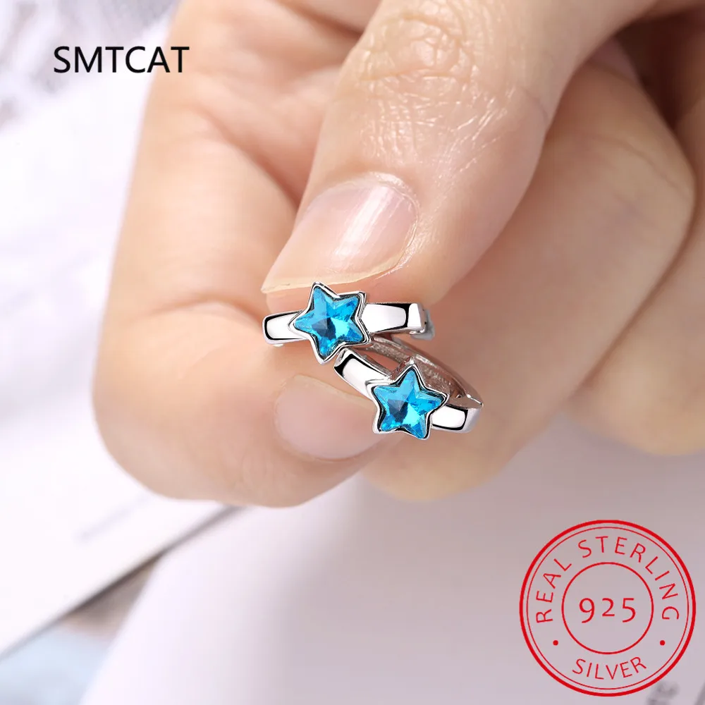 Серьги-кольца для девочек и женщин, серебро 925 пробы, синие кристаллы
