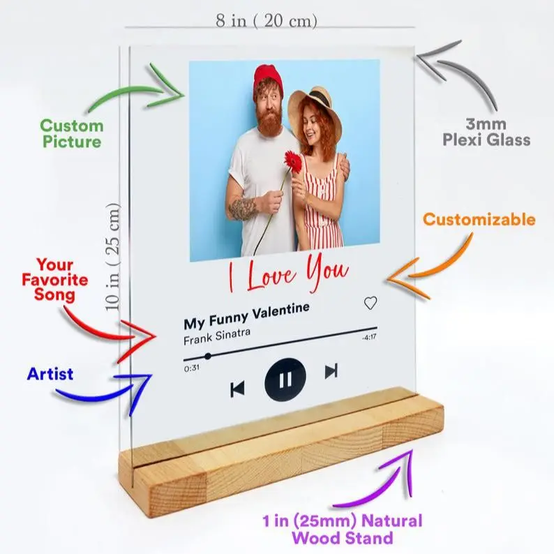 Пользовательский код Spotify акриловая музыкальная доска Spotify стекло персональный фото стиль для пары акриловый фотоальбом табличка