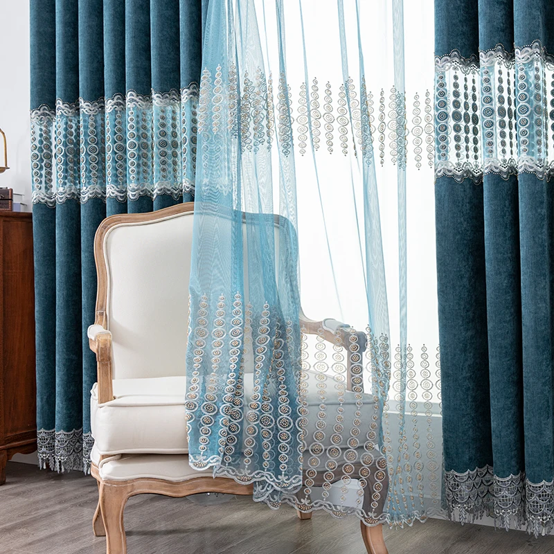 Роскошные занавески s для гостиной спальни в европейском стиле сине...