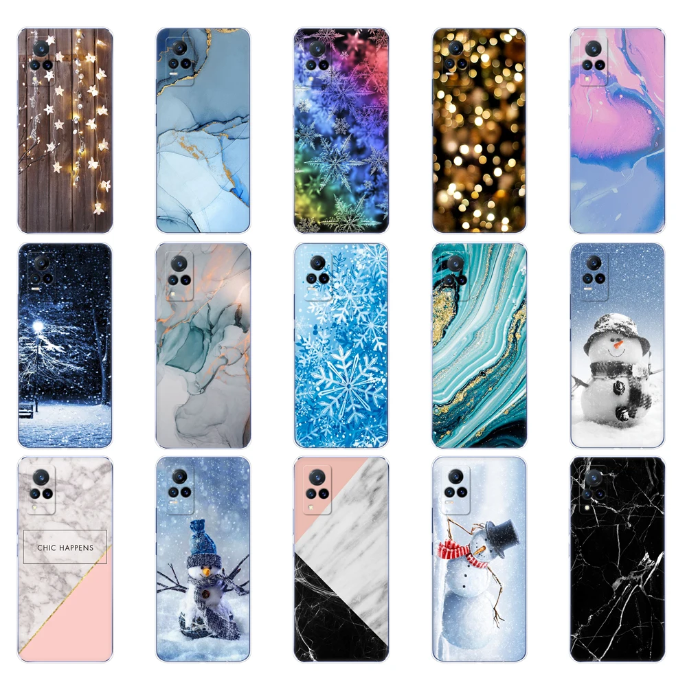 ДЛЯ vivo V21 ЧЕХОЛ ДЛЯ vivo V21e 4G задняя крышка для телефона VIVO V21e Vivo V21 4G 5G силиконовый чехол с мраморными снежинками зима Рождество