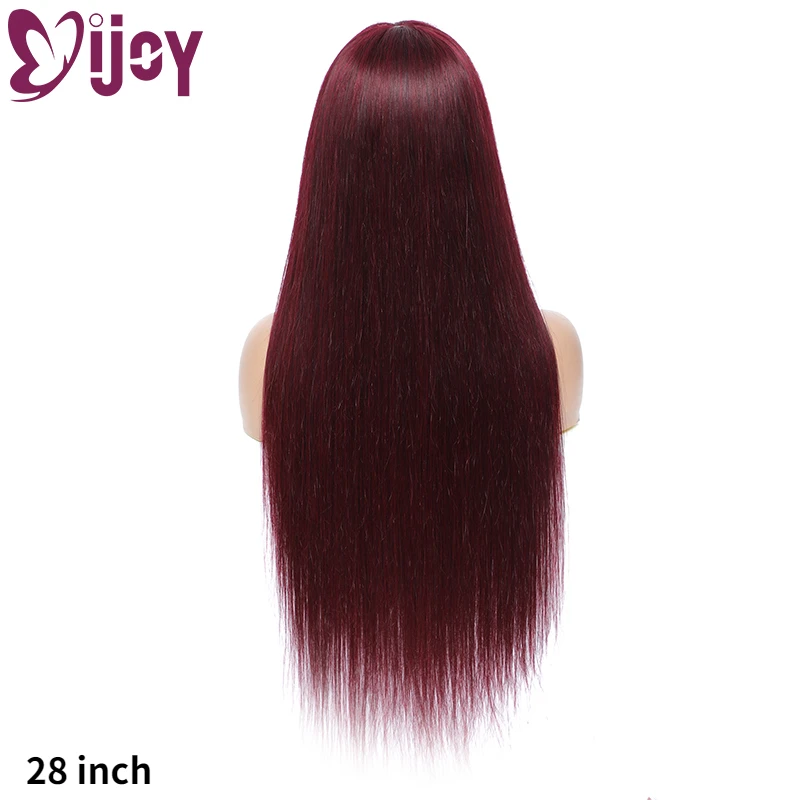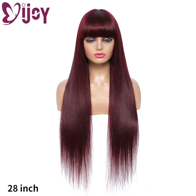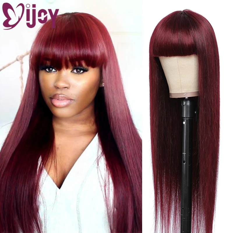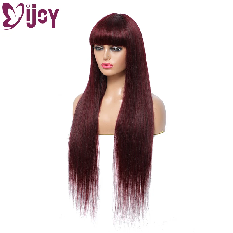 Бразильские прямые парики из человеческих волос с челкой для черных женщин IJOY 99Jбордовый полноразмерный парик из человеческих волос Remy