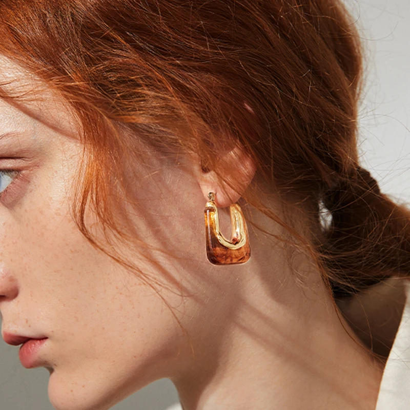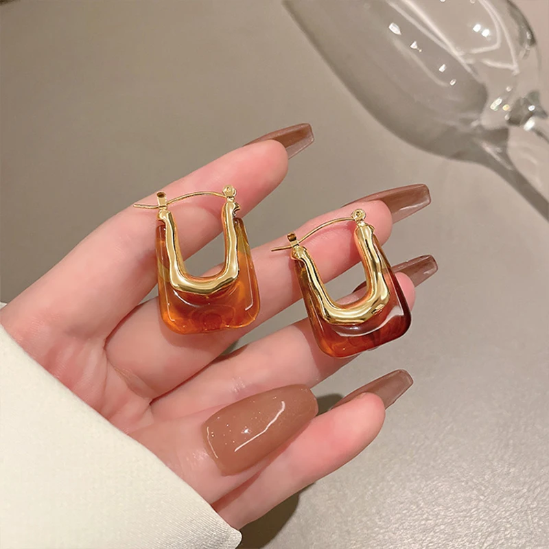 2021 новые осенние акриловые серьги из смолы для женщин коричневые прозрачные белые крупные Геометрические Квадратные Искусственные серьги