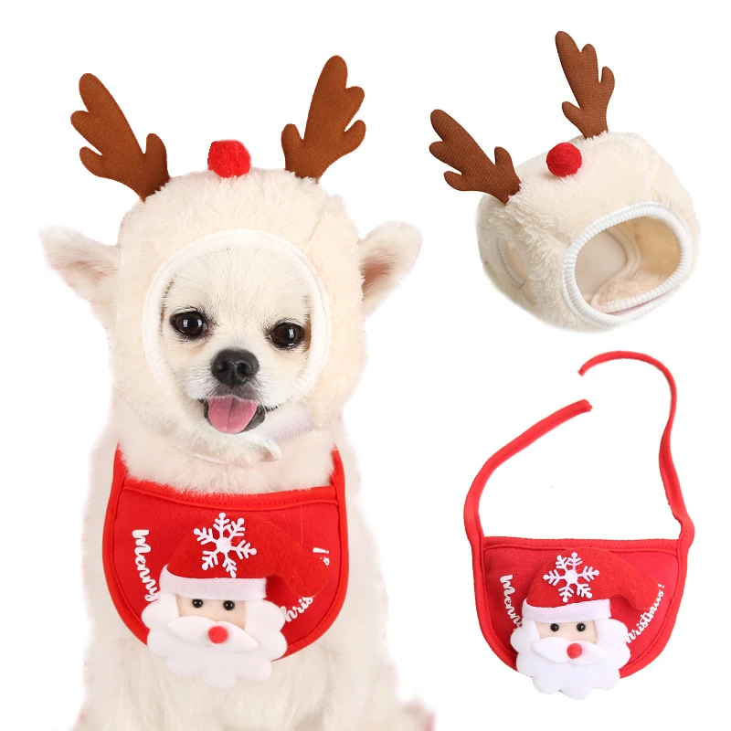 Рождественская шапка для собак и кошек, Слюнявчики с оленями для ма...