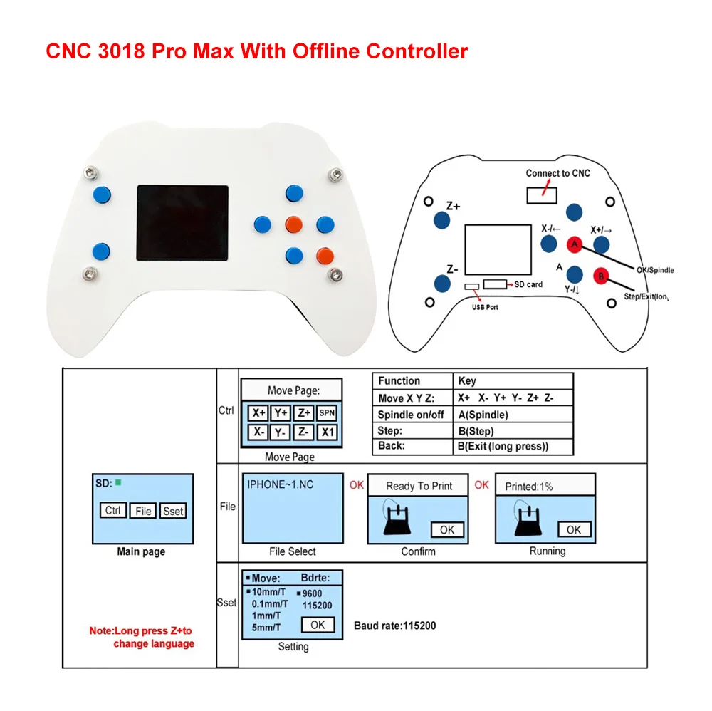 Фрезерный станок с ЧПУ для дерева, лазерный гравер, автономный контроллер, макс. 15 Вт