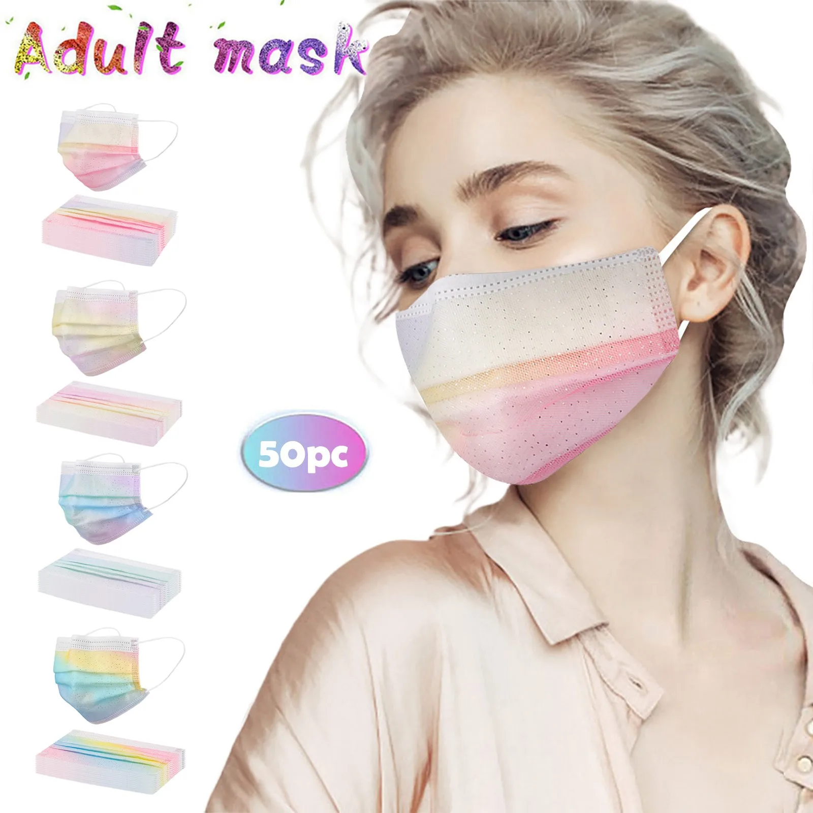 Маска для лица одноразовая трехслойная с радужным принтом для мужчин и женщин, маска для косплея, 50 шт.