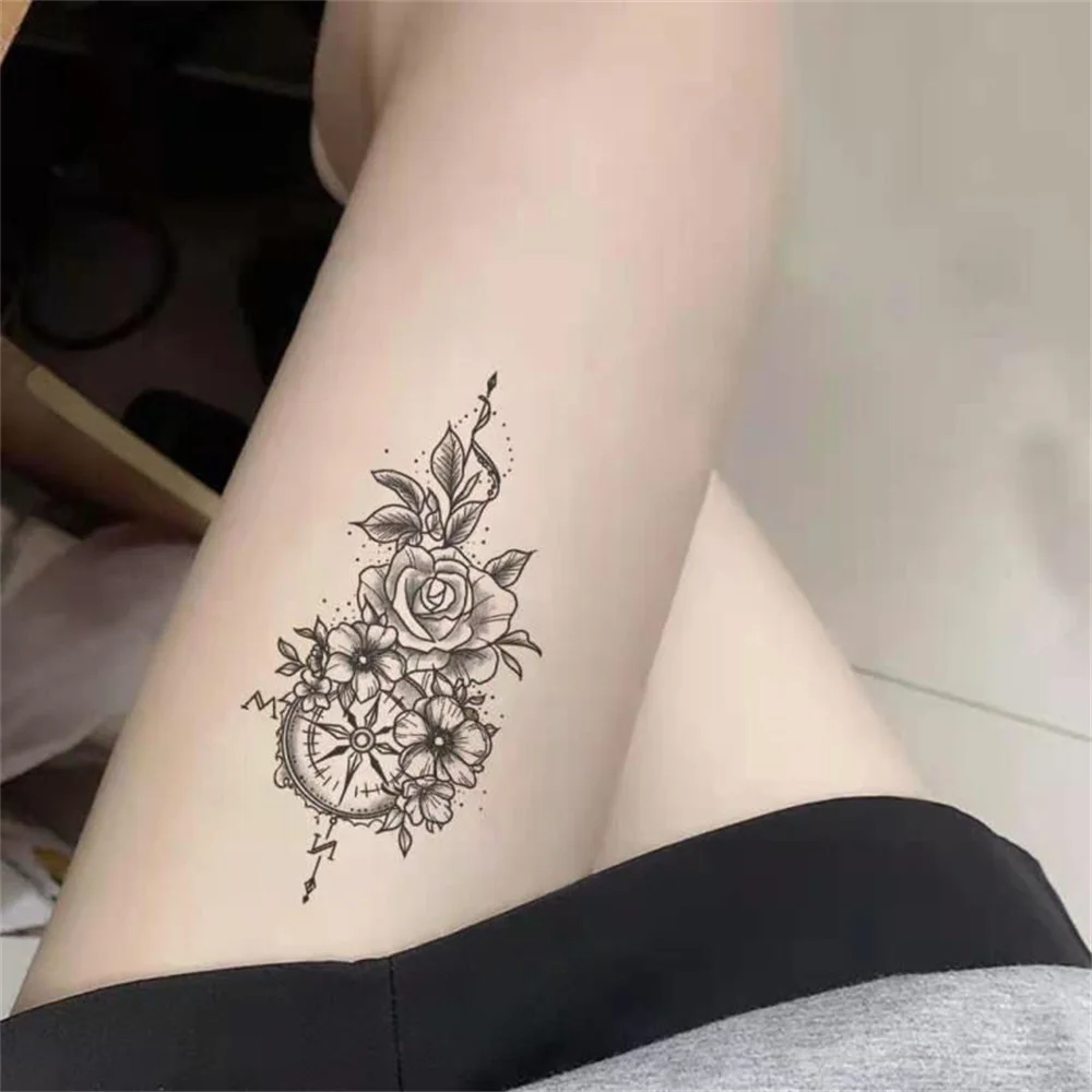 30 шт.лот модная женская имитация татуировки наклейка черные розы д...