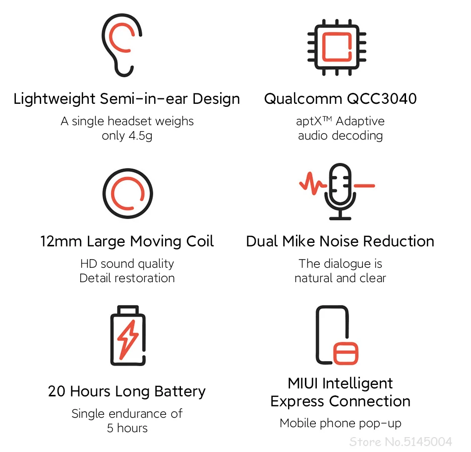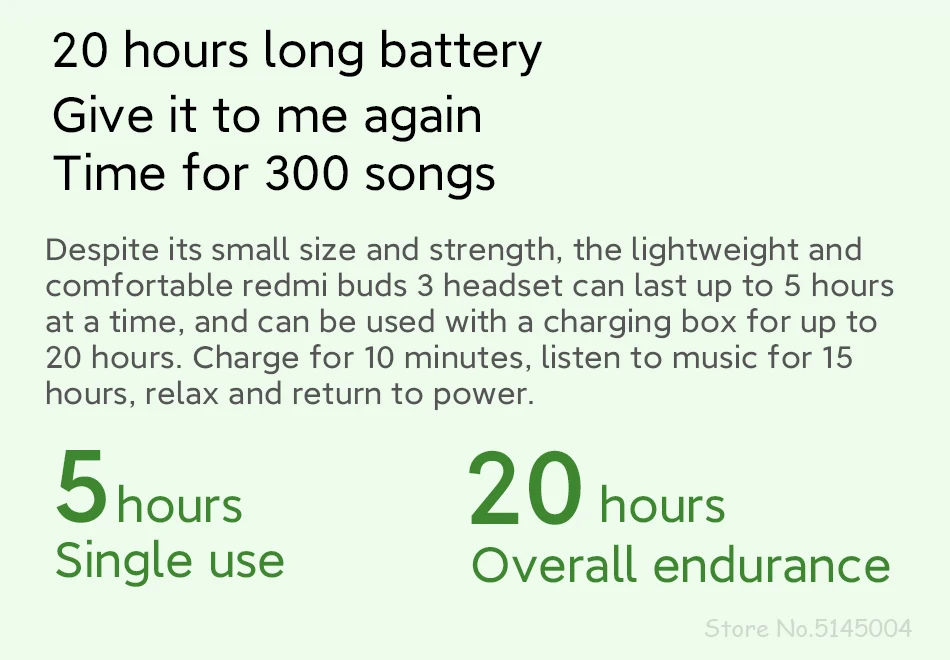 Battery LifeEarphone (About 5Hour); Charging Box (About 20Hour)