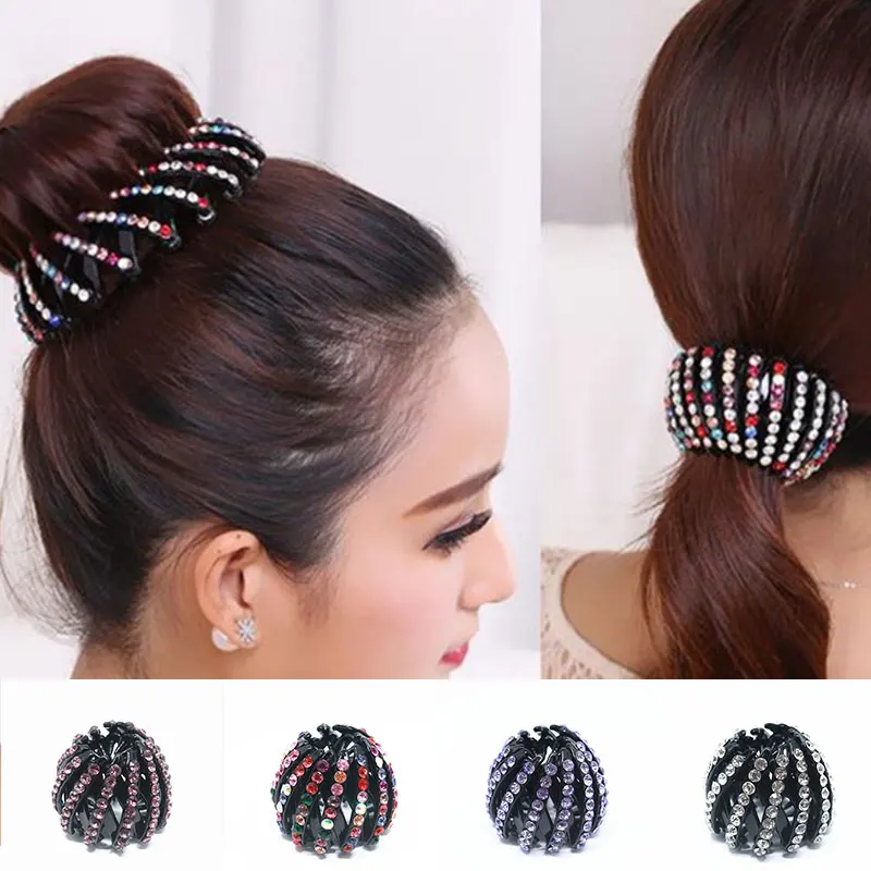 Модная женская заколка для волос в пучок с кристаллами заколка для конского хвоста заколка для волос в виде птичьего гнезда расширяющиеся аксессуары для волос женский головной убор для конского хвоста