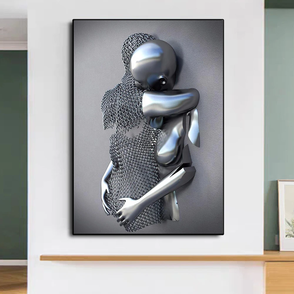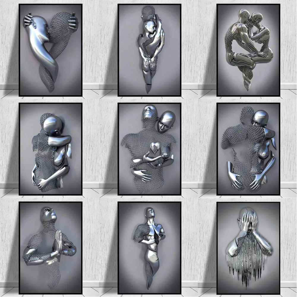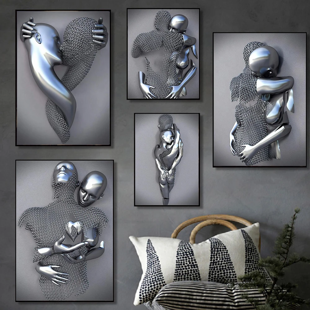 Абстрактная пара поцелуев 3D мертал Принт Холст Картина Мода Любовь Скандинавская стена искусства плакат картины для украшения гостиной