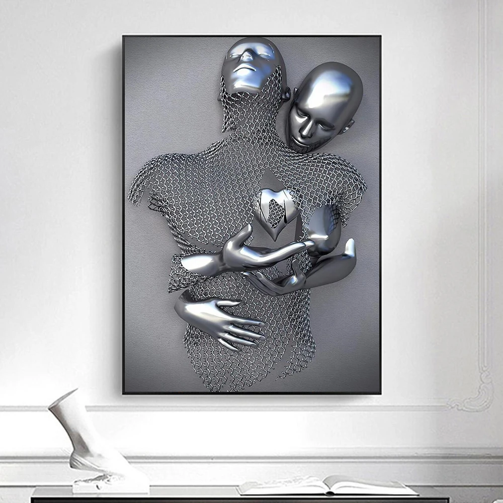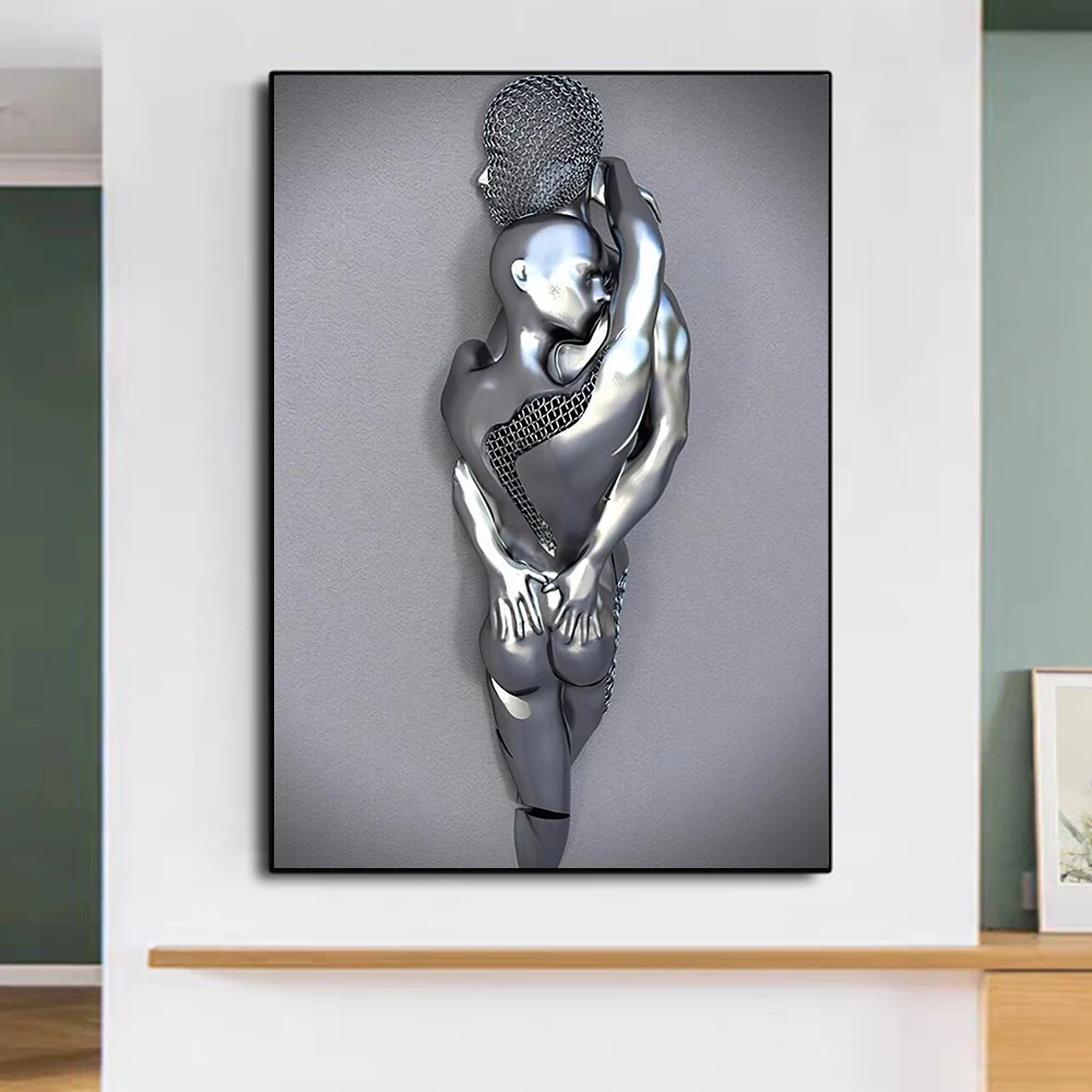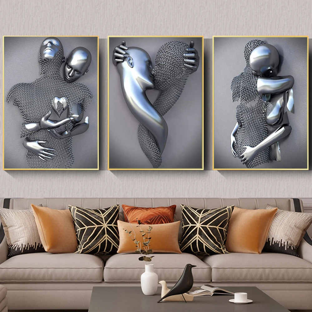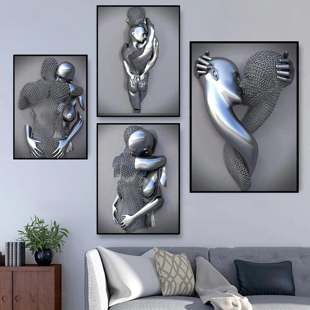 Абстрактная пара поцелуев 3D мертал Принт Холст Картина Мода Любовь Скандинавская стена искусства плакат картины для украшения гостиной