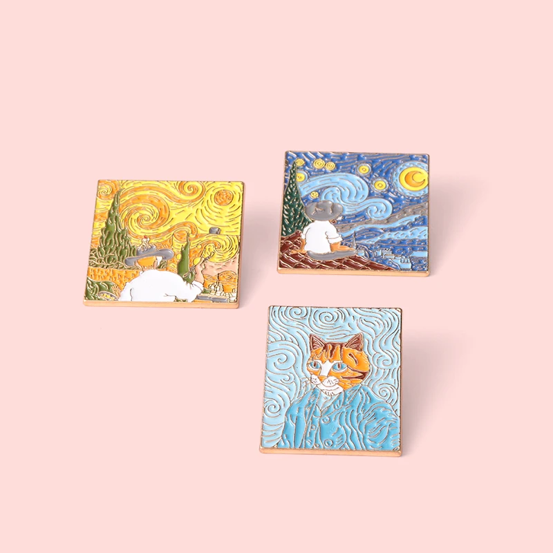 Знаменитая брошь с эмалью, картина маслом, кот Ван Гога, звездная н...