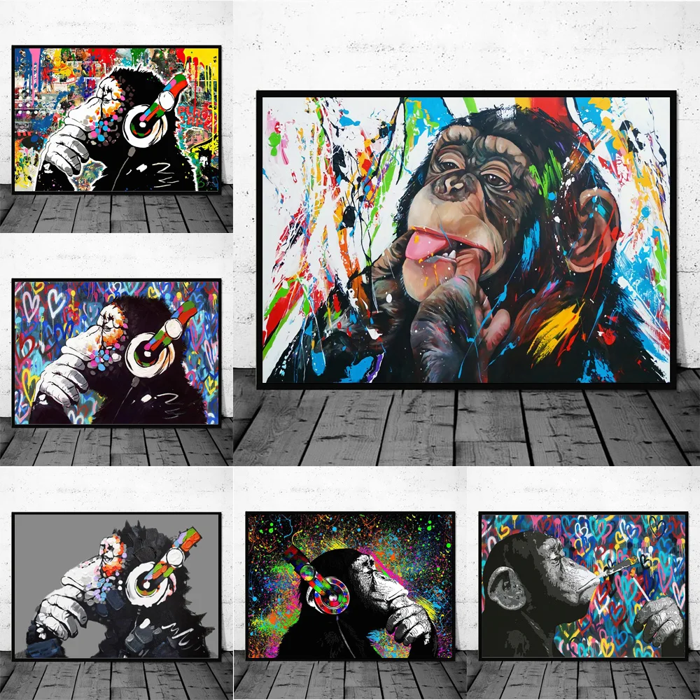 Граффити, обезьянка, рисунок лица, плакаты и принты, забавная Горилла, акварель, животные, холст, настенное искусство, домашний декор, роспись для комнаты