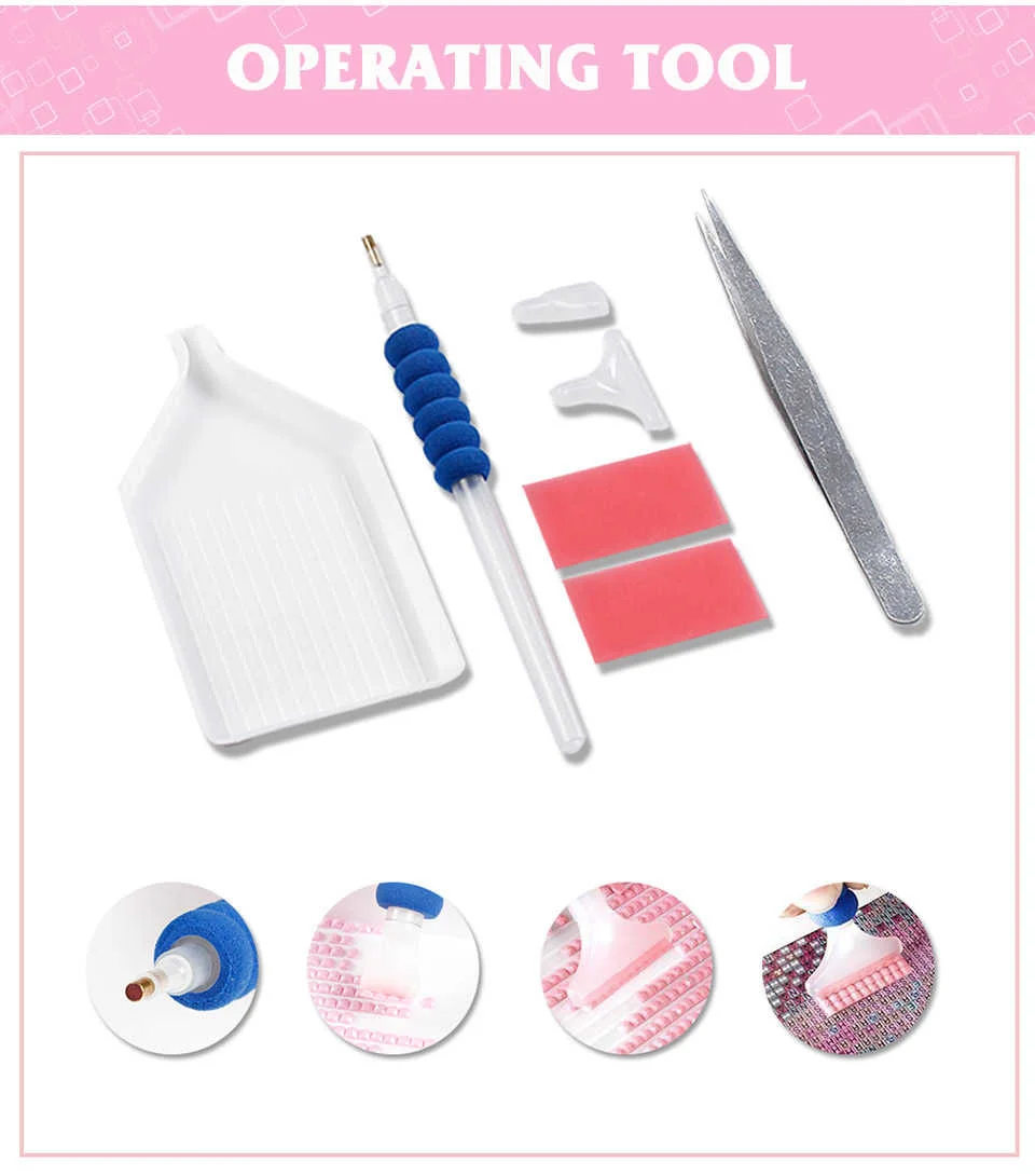 Инструменты включают в себя: пинцет, лоток, точечная Алмазная дрель, клей
