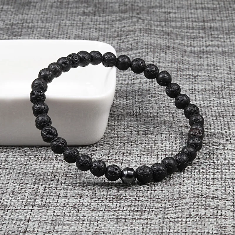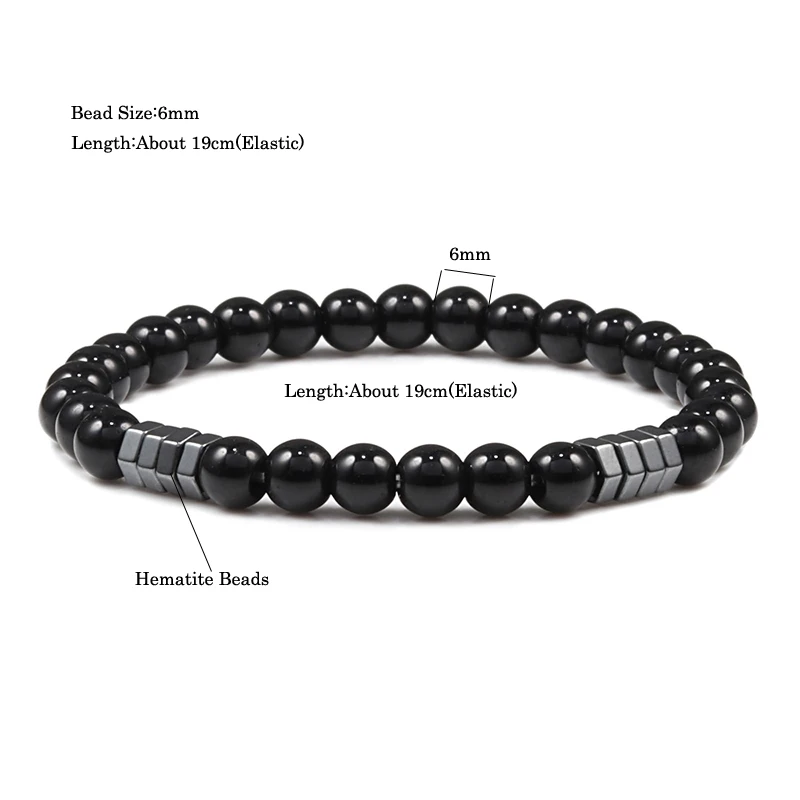 6 мм растягивающиеся бисерные браслеты, амулеты для мужчин, гематит, натуральный камень, черные браслеты из оникса, расстояние для пары, женские молитва йоги, ювелирные изделия