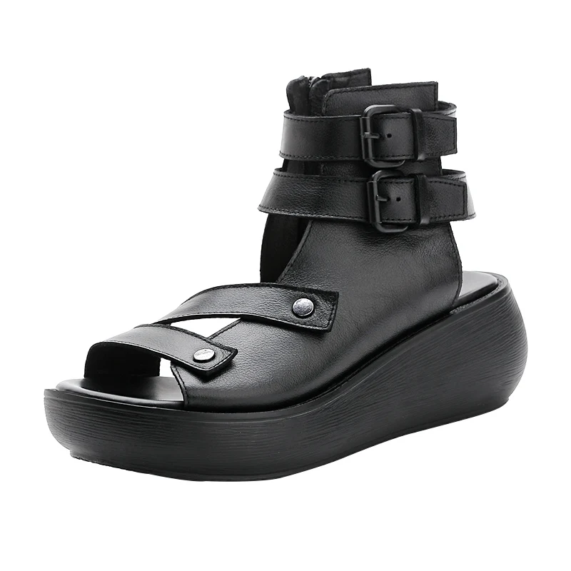 Женские сандалии с открытым носком, летние римские сандалии из мягкой искусственной кожи и воловьей кожи, обувь на платформе, сандалии на танкетке, 2022
