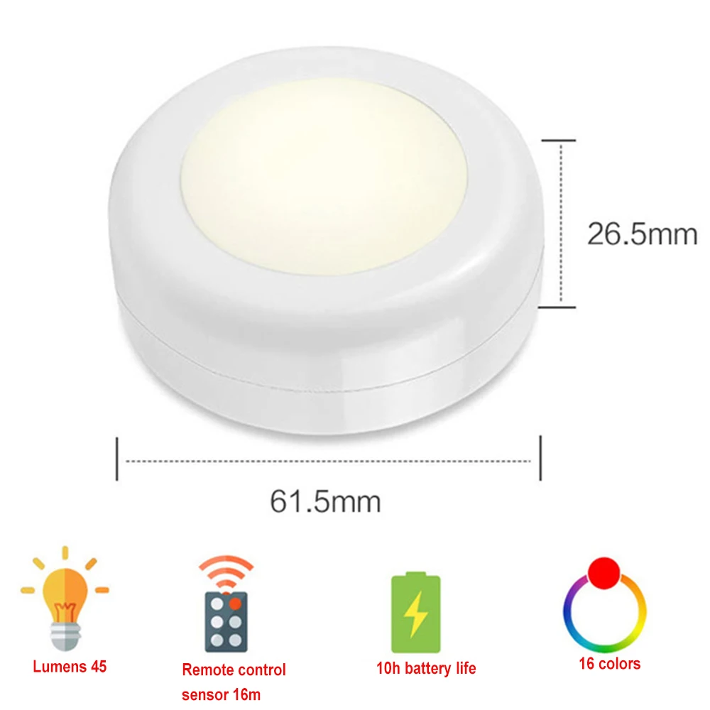 16 цветов RGB светильник для шкафа с регулируемой яркостью беспроводной пульт дистанционного управления Светодиодный светильник шайба с батарейным питанием для кухонной прихожейХарактеристики: