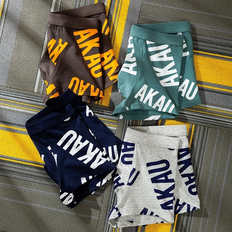 Трусы-боксеры мужские хлопковые, нижнее белье в японском стиле, с надписью Youth, милые модные штаны для мальчиков