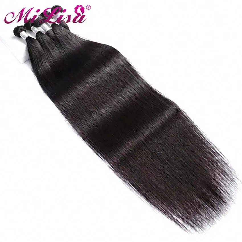 10- 28 дюймов Mi Лиза прямые волосы Комплект с закрытием Малазийские Волосы 3 / 4 Комплект с закрытием кружева 100% пряди человеческих волос для Комплект с Закрытие 4x4 застежка с пряди
