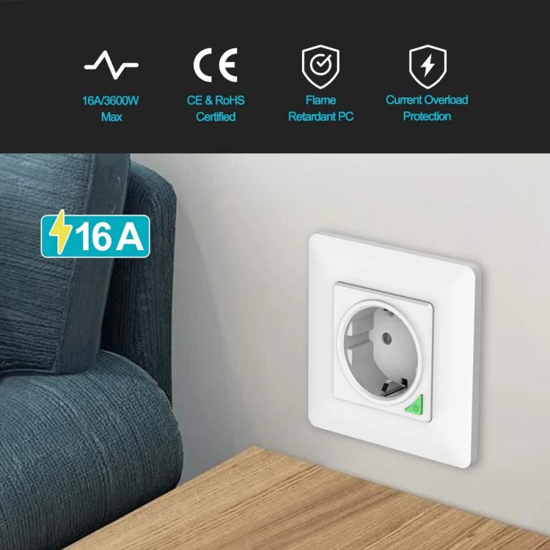 Умная розетка с Wi-Fi, 16 А, с монитором питания