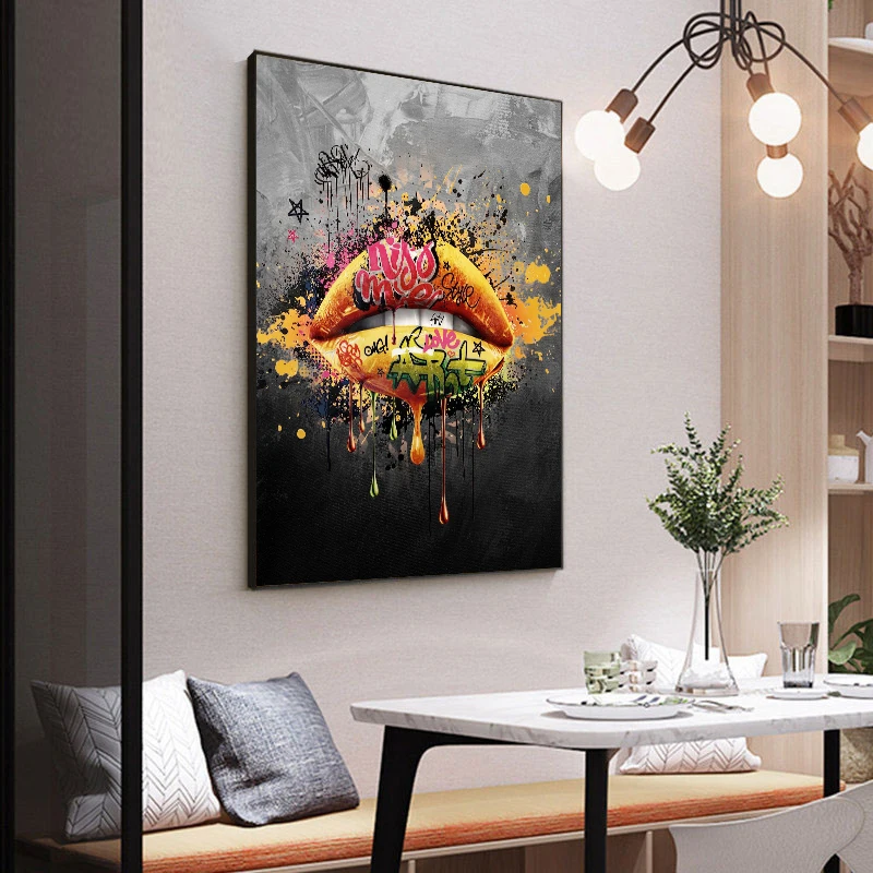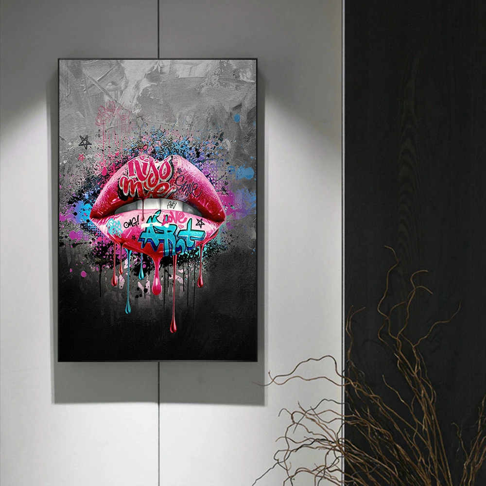 Уличное граффити, искусство, сексуальные губы, холст, живопись, абс...