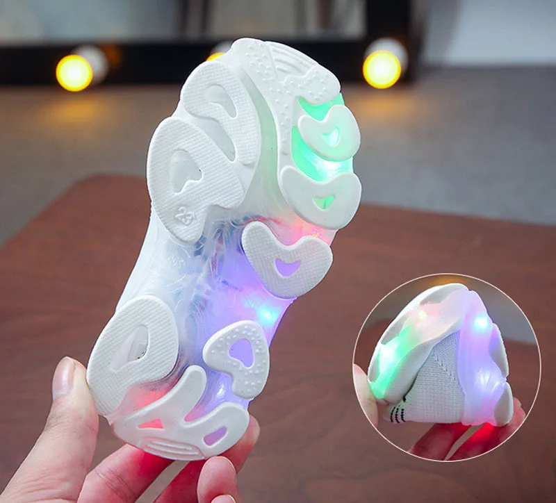 Детские кроссовки для маленьких девочек и мальчиков, сетчатые светодиодные светящиеся носки с буквами, спортивные кроссовки для бега, Обувь Sapato Infantil, обувь с подсветкой