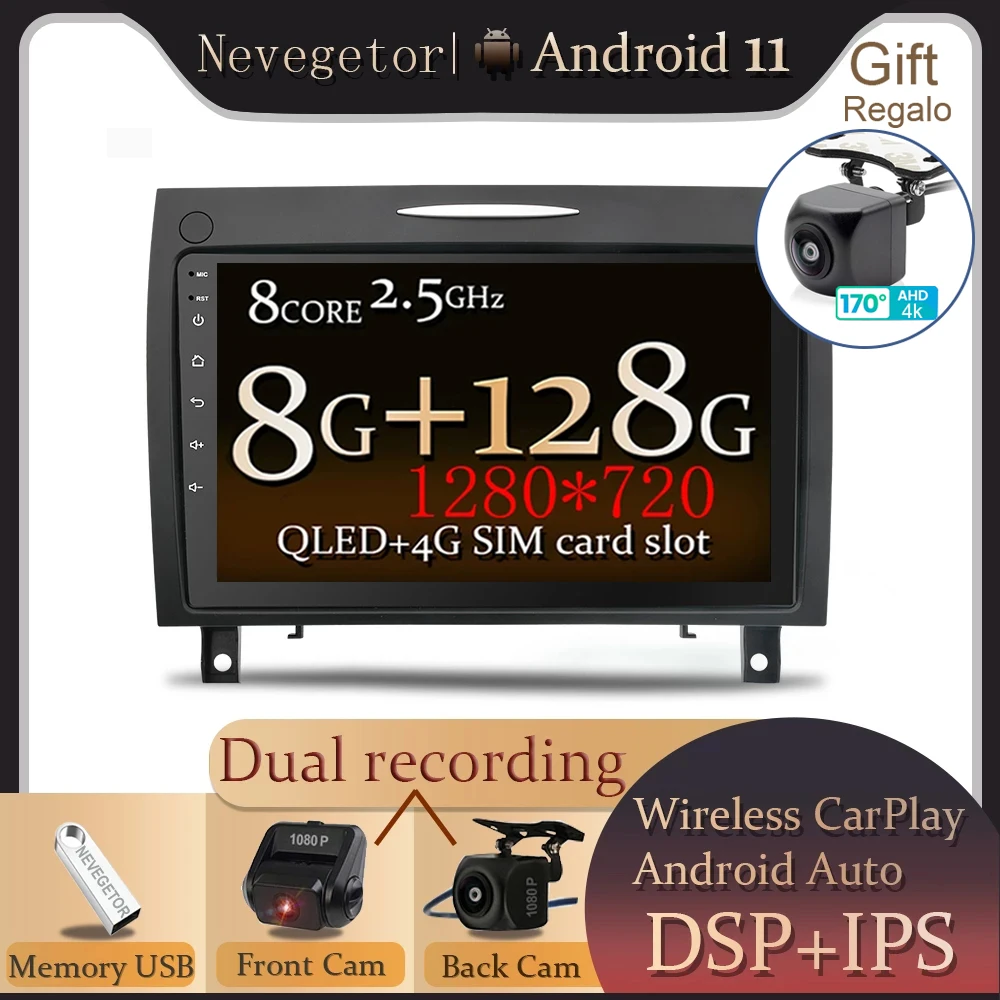Автомагнитола на Android 11,0 с GPS-навигацией, мультимедийный плеер для Mercedes Benz SLK class R171 SLK200 SLK280 SLK300 2000-2011 гг.
